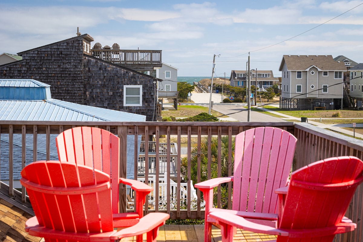 OBX小屋,带篝火和壁炉,步行即可到达海滩