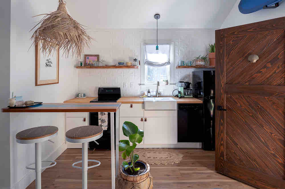 A Tiny House on the Outer Banks...Bright, and modern... perfect for 2 people! -Cozy Bed with softest linens -Kitchen stocked with stove, dishwasher, fridge, pots, pans, utensils, French Press, Keurig, tea kettle, tea pot, bar accessories -Luxurious tiled shower/bathroom -Relax in the vintage clawfoot tub out on the back porch -10x16 patio equipped with gas grill and fire pit and hammock -outdoor shower -smart tv -bikes, kayak, surfboards, paddle board, yeti cooler, beach chairs, and umbrella