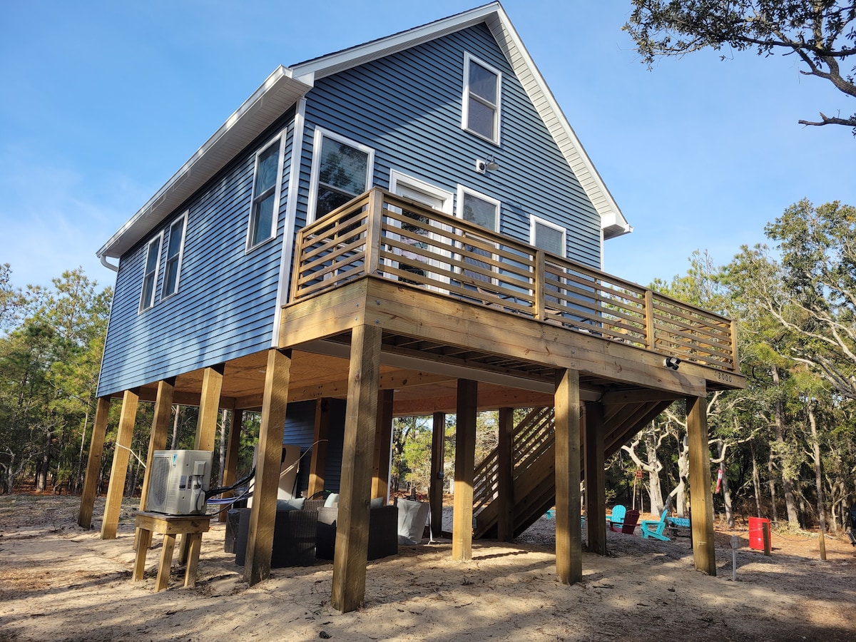Nestled in the heart of Southern Shores, our house is tucked away from the typical hustle and bustle of the resort areas of Kitty Hawk, Kill Devil Hills, and Duck, while being close enough for walk to the beach! A 15-minute bike ride into the town of Duck (2 bikes provided) will provide an afternoon with your friends and family, without the headache of traffic and parking. The house has dedicated workspace, gas fireplace, 42-inch HDTV with YouTube TV, sound system, and fiber internet WiFi.