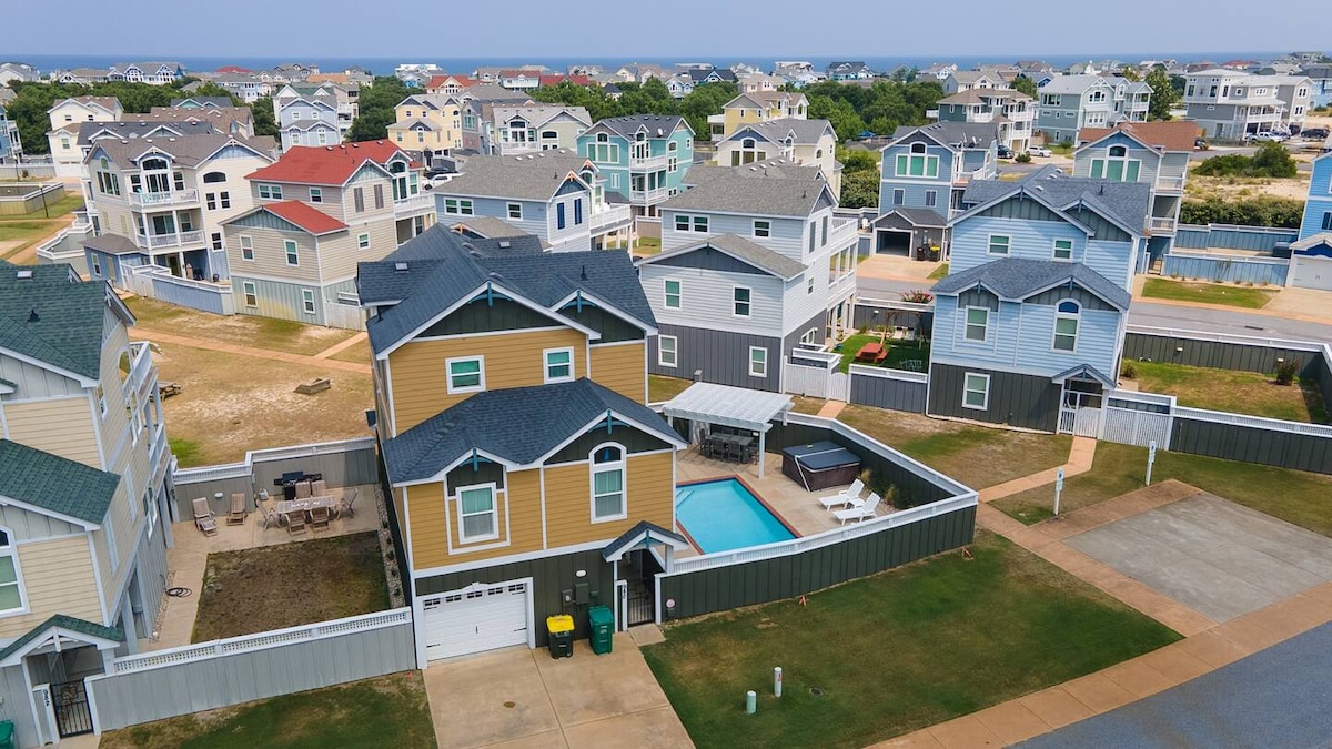 Take a breath and OBXhale! Welcome to your ultimate beach retreat in Corolla, NC, brought to you by Salt Coast Hosts! This 5-bedroom home promises a plethora of amenities for an unforgettable coastal getaway. ✓ Sleeps 10 People ✓ Screened Porch ✓ Private Pool and BRAND NEW Hot Tub ✓ NEW Kitchen Appliances ✓ 7-Minute Walk to Beach Access ✓ 2 Separate Entertaining Area ✓ Beach Chairs and Wagon ✓ Free Ultra Fast Wi-Fi ✓ Free Parking for 4 Cars ✓ Linens & Bath Towels Included