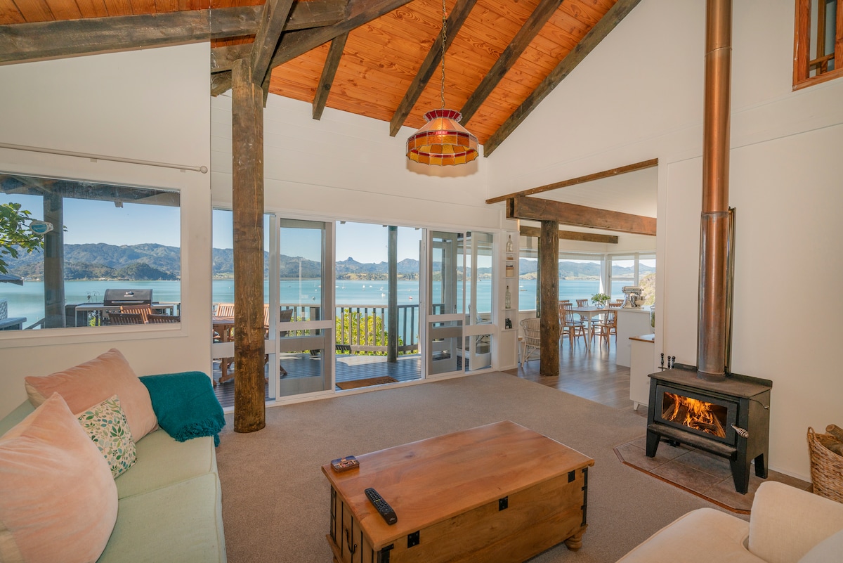 Breathtaking views, stunning location, private walk to the beach with everything you need for your best staycation ever! Taid View sits on the Wyuna Bay peninsula with water views on both sides. 4km from Coromandel town which is a healthy walk (if fit!) or a 5 minute drive. Fully fitted kitchen, BBQ, kayaks, games, books and music system to make your stay memorable. There is a cot available at $60 for the stay, infants are charged at additional guest rate if a bed is required.