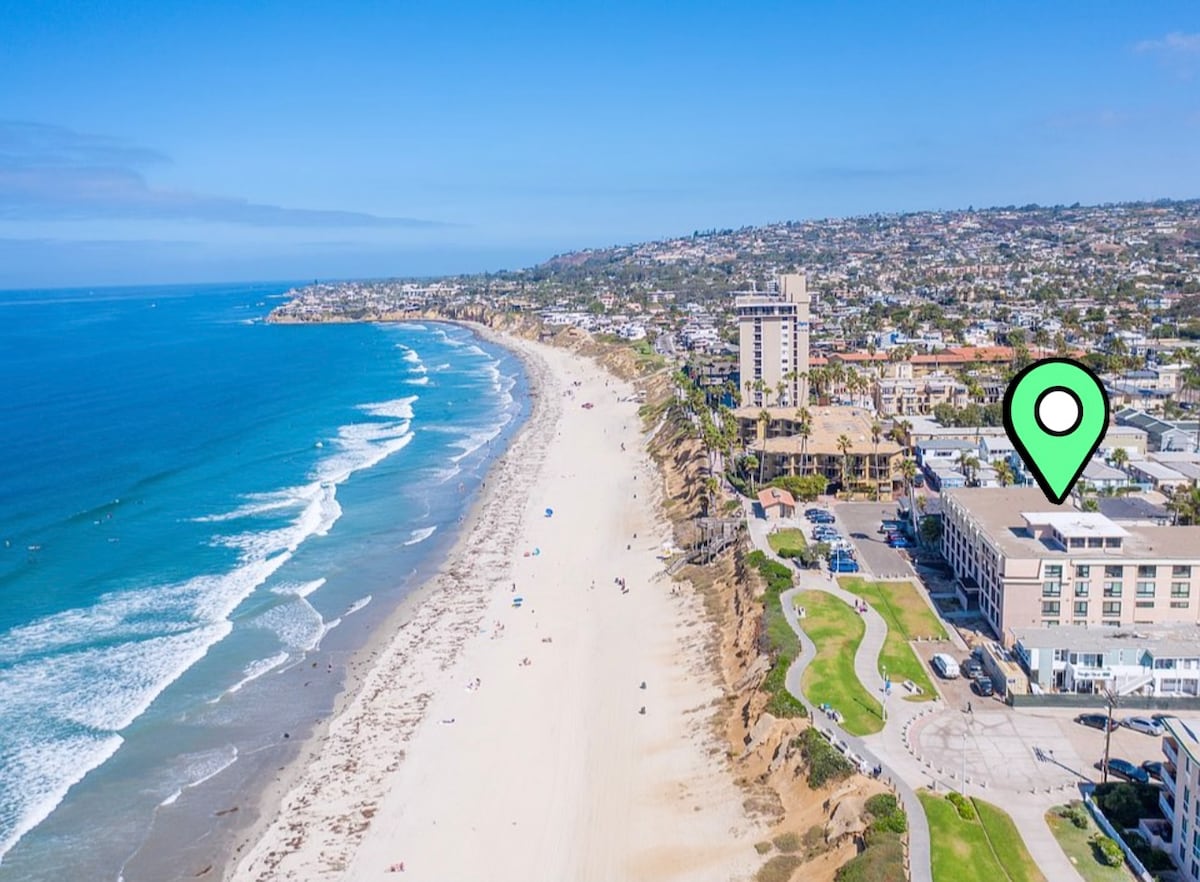 This luxury condo across the beach offers a large ocean view balcony-deck w/private BBQ + access to a shared common oasis area for all our guests with a Hot Tub, Fire Pit, Outdoor Shower and more to relax after a day at the beach. Remodeled Building Pet friendly, 4 min. walk to famous dog beach! 🐶 Central A/C, Master Suite has a king bed and the other two Ocean View Queen Bedrooms! Full kitchen, in-unit laundry, 2 Parking Spaces, Driveway right by your unit 🚘 🚘