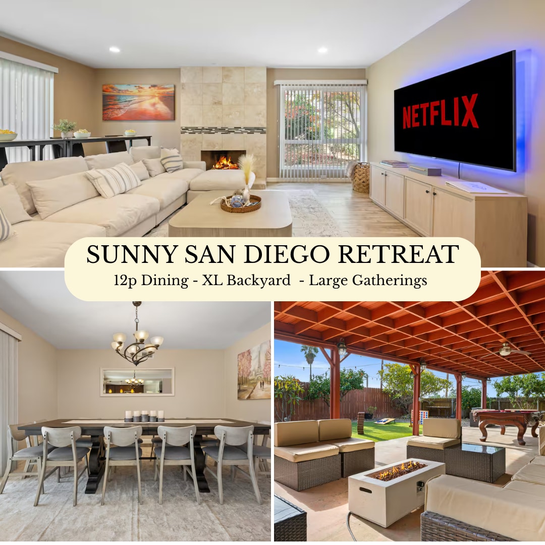 Enjoy the ultimate vacation at our luxury 4-bedroom home, nestled in an upscale coastal neighborhood. With soaring ceilings, a gourmet kitchen, a 116” home theater, and a player baby grand piano, this is sure to be an unforgettable experience! Enjoy the indoor and outdoor spaces, including a lavish backyard and gazebo overlooking the valley below. 10 Min Drive to the beach 12 Min Drive to Torrey Pines State Reserve 20 Min Drive to Balboa Park Experience San Diego With Us & Learn More Below!