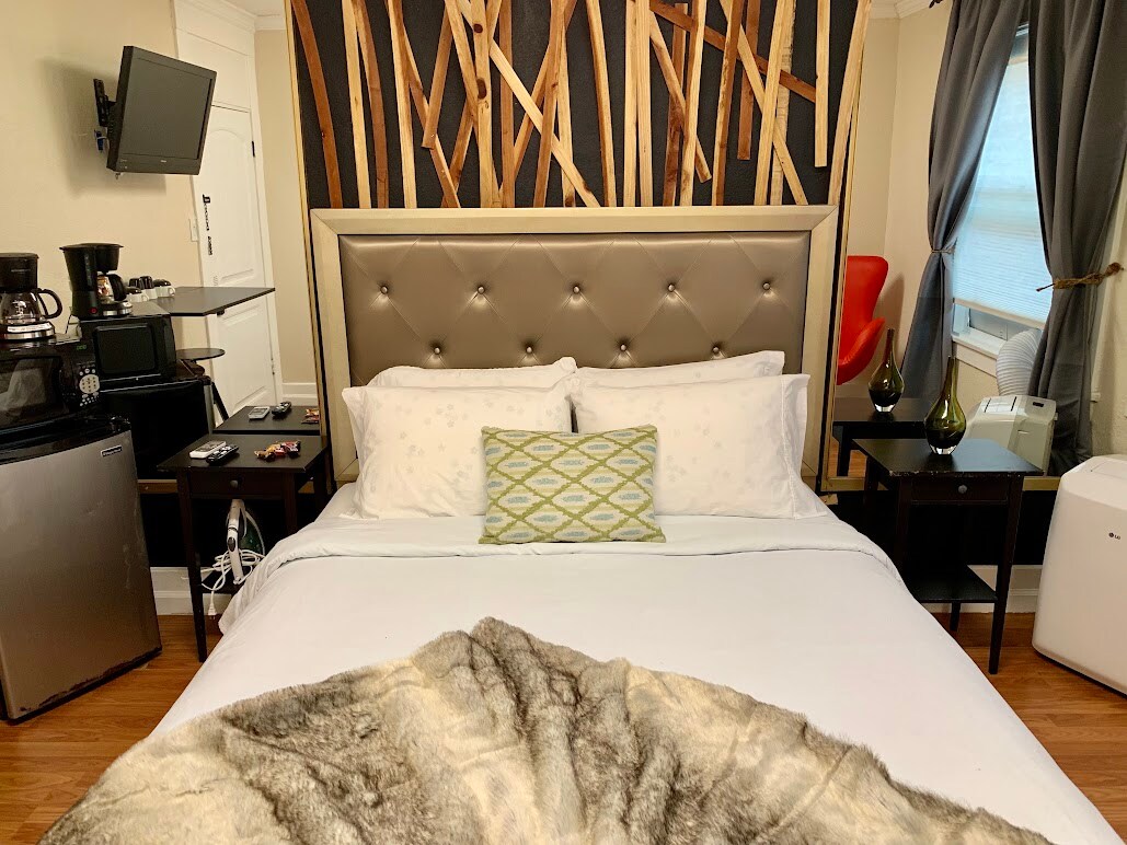 Includes a workstation that allows you to work using a high-speed WiFi Internet Connection for your Zoom Meetings - Bring your laptop (Parking is included for 1 vehicle) We provide parking with 24hr In/Out access for (1) vehicle in an enclosed parking structure that's (1) block away. You will check in first to receive our parking pass NOTE: This apartment is located on the 2nd floor of a historic building with NO ELEVATOR. There is ONLY a stairway to the 2nd floor