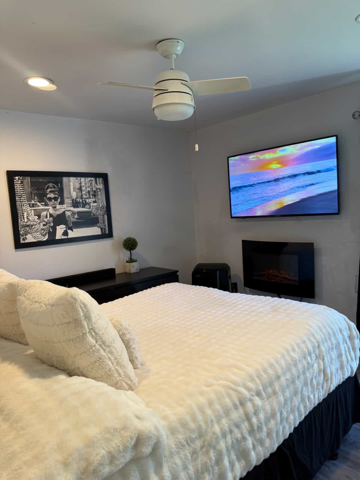Wake up to breathtaking views of the San Diego skyline and bay from your private rooftop deck. Relax in a stylish suite with a king-size adjustable bed, spa-style indoor Jacuzzi for two, and exclusive access to a rooftop fire pit and garden corner—perfect for a romantic night under the stars. Nestled in Point Loma, one of San Diego’s most exclusive and quiet neighborhoods, just minutes from Little Italy, the airport, and the beach. Ideal for romantic getaways or peaceful stays with a view.
