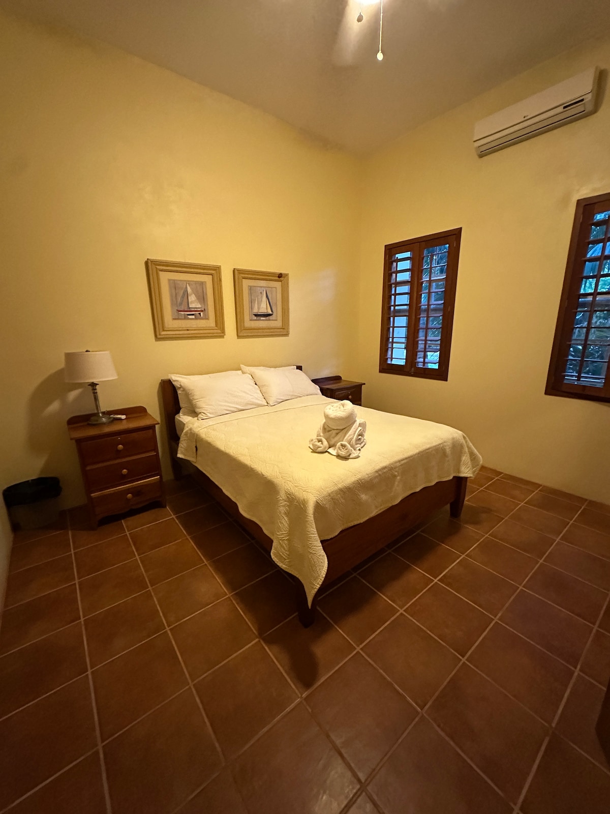 The original eco friendly, off the grid Bed and Breakfast in Secret Beach. The cabana is a private room with queen bed and private bathroom. Enjoy sea, sunset, and stargazing views from your balcony. Quiet mornings and calm sea waters with no sargassum! Purchase drinks and snacks, play games, gather at our social club. Steps from the sea!! Our cabanas do not have air conditioning, instead fall asleep to the Caribbean breezes, with ceiling fans above and windows that invite in fresh sea air.