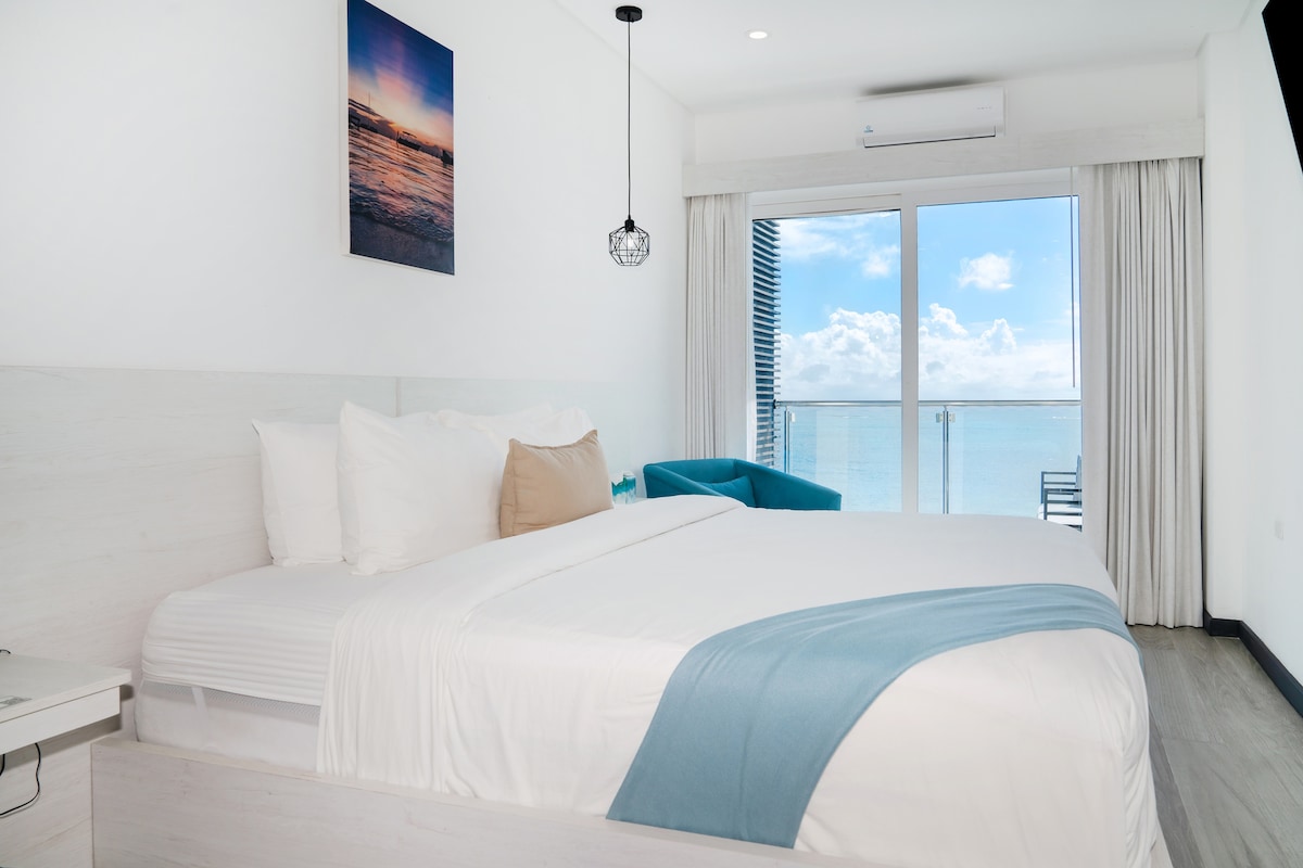 Oceanview 1 Bedroom | Unit 508 – The Watermark Hotel Dive into paradise at Oceanview Unit 508, a stunning 1-bedroom unit with a private balcony offering breathtaking ocean views. Enjoy modern comforts like air conditioning and free Wi-Fi. Dive into relaxation with access to a community rooftop pool, or explore nearby snorkeling and fishing spots. Perfect for your next Belize getaway!