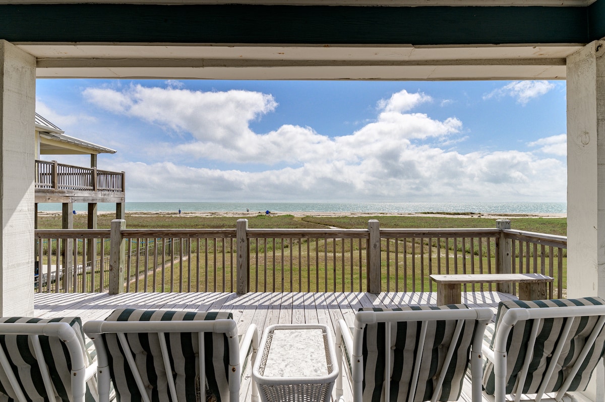 This is a beach front property on North Beach. Sunrise views. We are the only beach house on the beach. This is close proximity (5 min drive) to the Texas State Aquarium & Lexington Museum or use the beach walk from outside the home all the way down as well. Fishing area & play area is walking distance. Great place to enjoy the sun and the beach ! This house is clean and ready to enjoy your vacation. We have another house across the street to accommodate more guests up to 8 more, message me.
