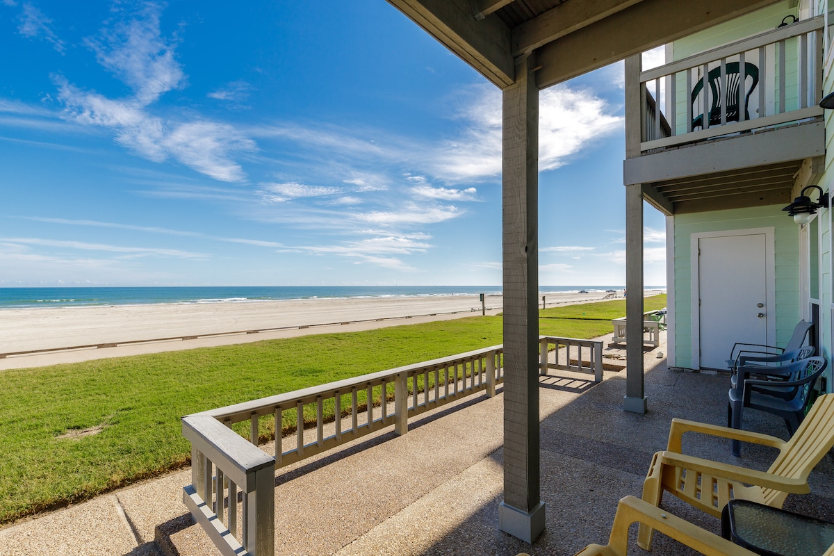 Imagine stepping onto your spacious balcony and being greeted by the breathtaking view of the Gulf! Sip your morning coffee while watching the sunrise. Spread out with your family and enjoy a big breakfast to fuel your beach day ahead! The large deck, approximately 300 sf, is accessible from both bedrooms as well as the great room. With unnobstructed views of the ocean beyond the grass field, you'll feel as though you're alone on a secluded island. It's truly a visual treat!