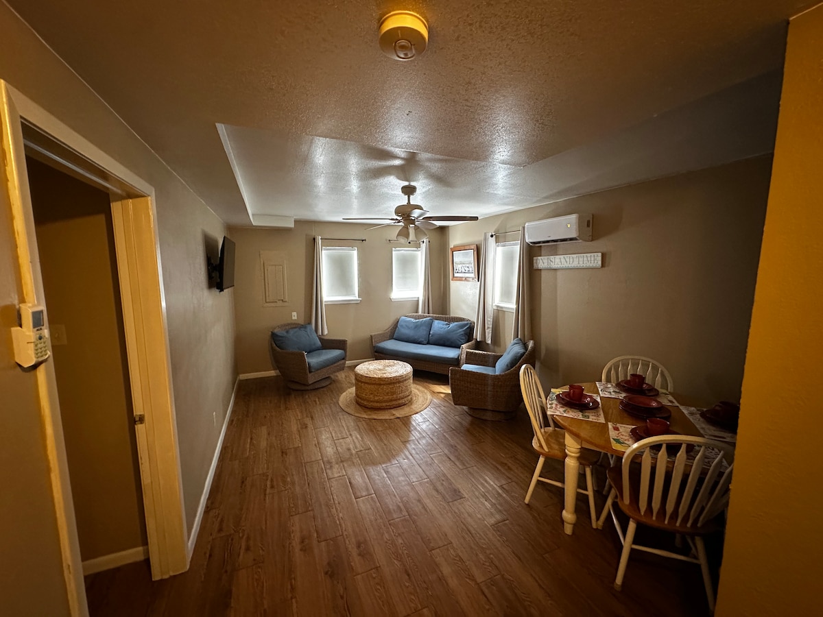 Plenty of natural light in this one bedroom studio well appointed with two queen-sized memory foam mattresses and hotel quality bedding. The closest Airbnb to the Rockport beach (Rated best beach in Texas!) with a peek of the bay from the balcony. Relaxing and quiet inside and around the corner from historic downtown Rockport, with boutiques, museums, shell shops and bars. Beach chairs, awnings, cornhole, beach toys, bocce and ladder golf available to borrow.