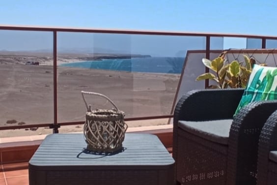 On the beach in the centre of Corralejo, this house is a unique find and wont dissapoint. The views are breathtaking from the lounge kitchen and terrace. 2 large bedrooms can accommodate 2 couples or 4 single people as the beds can be separated, there is another room as part of one of the bedrooms with a sofa bed and is suitable for children. We provide high speed internet, smart TV, coffee machine. A car is not needed for this property as you are one block from the main street.