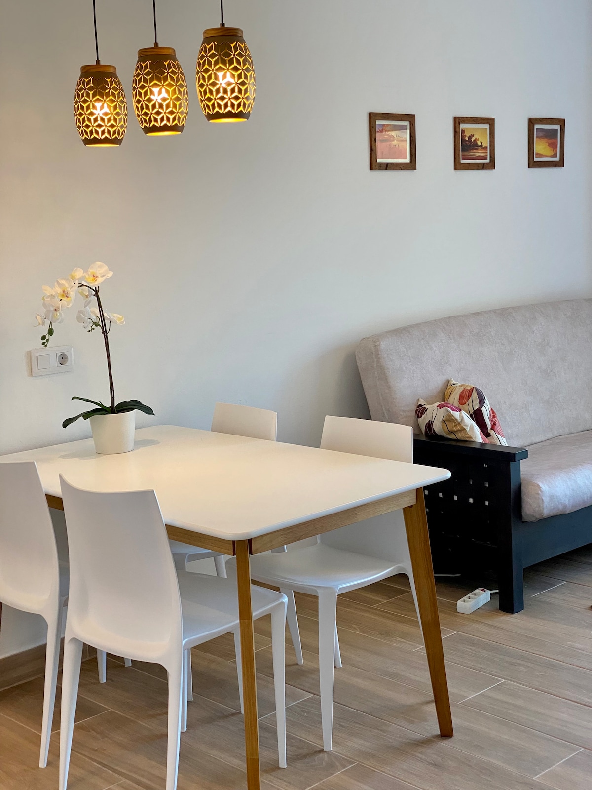 Renovated apartment in the center of Corralejo, the best tourist area in Fuerteventura. The apartment is fully equipped, has a very good fiber optic WIFI connection, an office table and chair for teleworking, has a equipped kitchen, a large room with a double bed, a spacious living room with a very comfortable sofa-bed and a complete bathroom. You will enjoy a beautiful and cozy terrace with direct views of the sea and the main avenue of Corralejo, always sunny and with a lot of atmosphere.