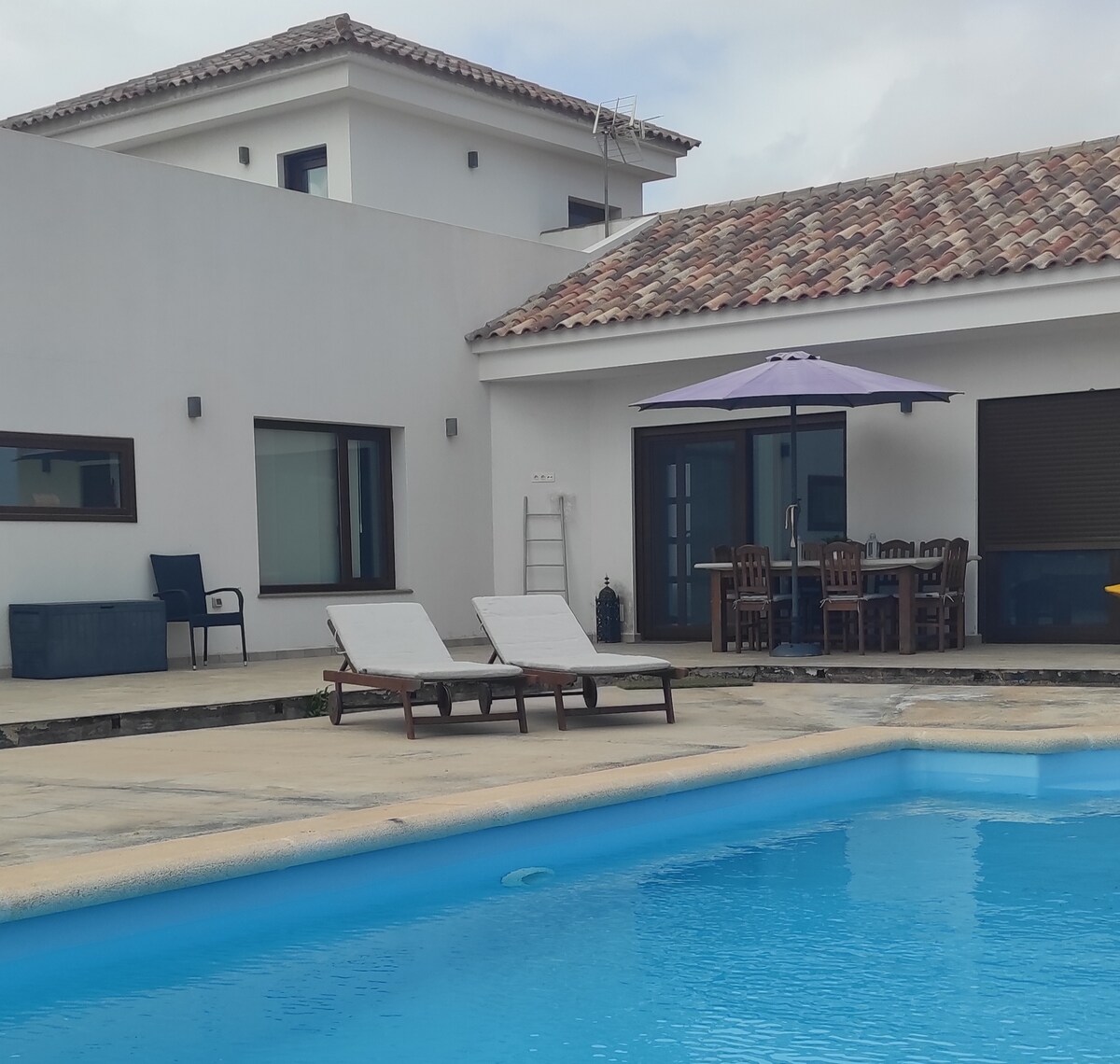 Villa independiente con piscina privada. Ideal para descansar y pasar unas vacaciones de ensueño o teletrabajar . Consta de 3 dormitorios y 2 baños completos, cocina independiente y salón comedor. Estancias amplias con Wifi de alta velocidad . Consta además de barbacoa y mesa exterior donde poder disfrutar alrededor de la piscina. En zona muy tranquila de fácil acceso y cerca de cafeterías y supermercados. Ubicación estratégica y muy bien comunicada.