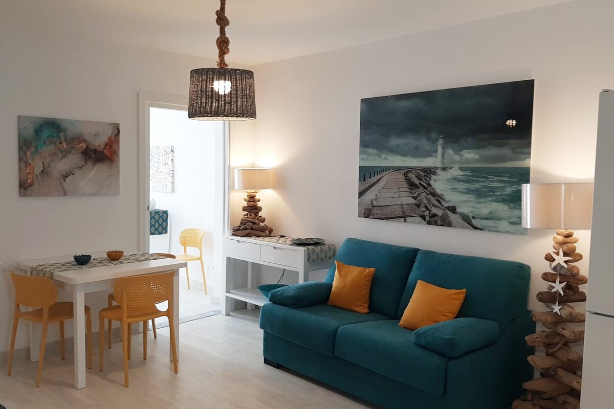 Apartment exclusively for couples with sea view, WIFI, near beaches and in the center of Corralejo. Suite with spacious bedroom with king-size bed and Android TV lcd 32" Spectacular views on both sides, even from the bed, through extensive windows, being able to see the volcanoes and beaches. Full equipped kitchen Included in each stay: Towels: 2 shower towels + 1 sink towel per person Sheets: 1 set of sheets for one week and 2 sets for more than a week Toilet paper: 2 rolls per bathroom