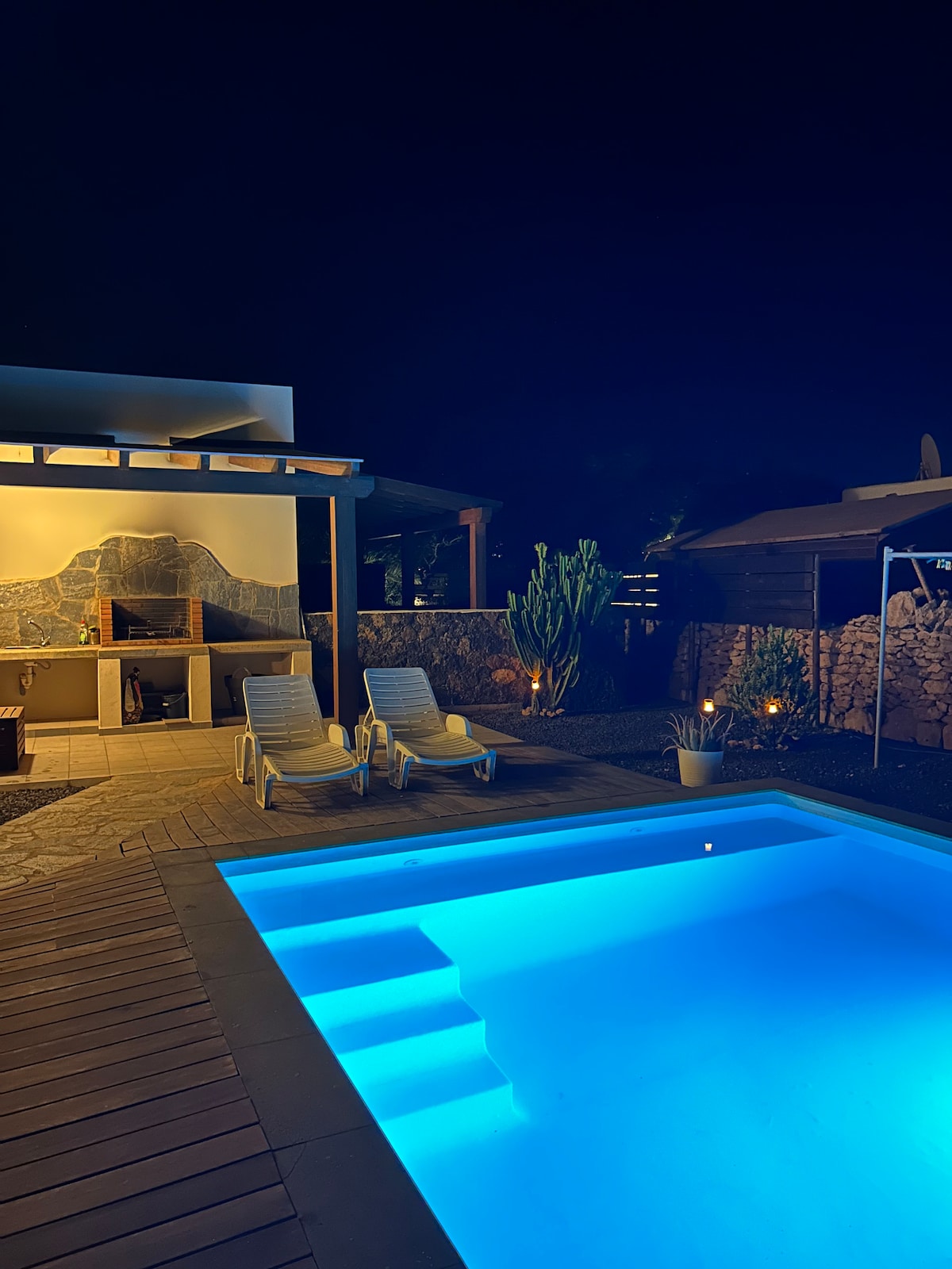 La "Villa Calderón Hondo" es una Villa excepcional con vistas y paz únicas y a 5 min de Lajares y Corralejo. La casa esta delante del parque natural del Calderón Hondo y disfruta de un silencio absoluto, vistas a la puesta de sol y a las estrellas sin una sola casa o luz delante. Esta en una urbanización cerrada con piscina y muy fácil acceso a todos los servicios y comercios. Es mi casa para mis largas estancias en la isla, reformada y decorada con la máxima calidad y cuidado.