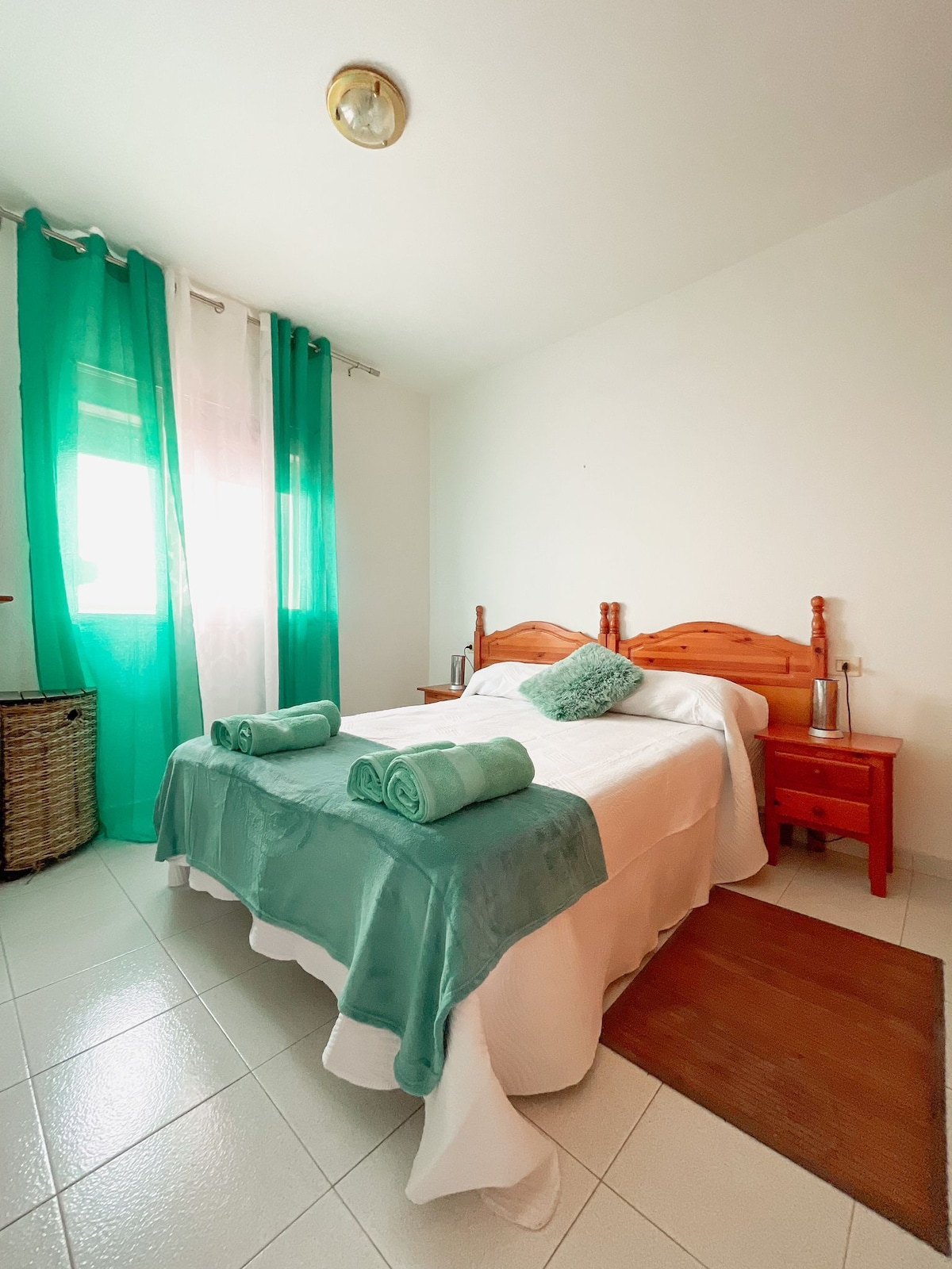 El apartamento con vistas al mar ubicado en el centro de Corralejo. A 50 m del mar, paseo maritimo y el muelle de Corralejo. Tiene 2 dormitorios con cama matrimonial y un dormitorio singular. Dispone de un salon amplio con la cocina y barra americana. Está completamente equipado, con TV, lavadora, internet rápido, microondas, horno. El apartamento tiene aceso a la terraza - azotea con vistas. Ubicado en el centro de pueblo en la cercania de cafeterias: La Luna, La Ola y Escuela de Buceo.