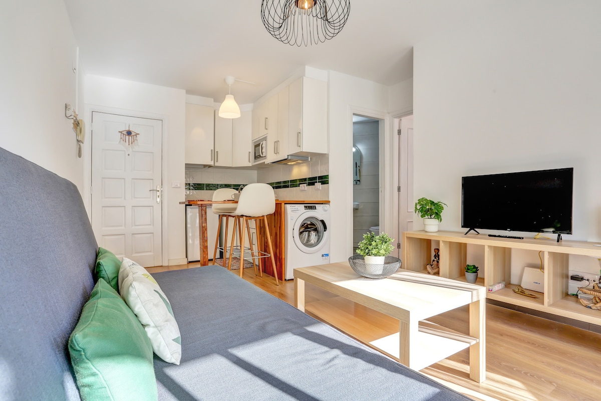 Renovated apartment in the center of Corralejo, the best tourist area in Fuerteventura. The apartment is fully equipped, has a very good fiber optic WIFI connection, an office table and chair for teleworking, has a equipped kitchen, a large room with a double bed, a spacious living room with a very comfortable sofa-bed and a complete bathroom. You will enjoy a beautiful and cozy terrace with direct views of the sea and the main avenue of Corralejo, always sunny and with a lot of atmosphere.