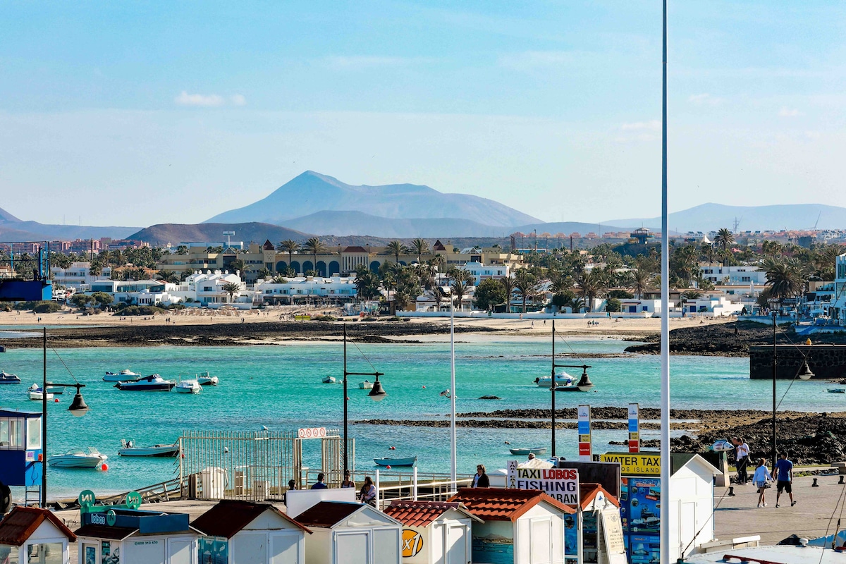 Encuentra el momento de tranquilidad y magia siente el mar como en un barco, te quedaras asombrado contemplando las islas (Lobos y Lanzarote) desde este atico.Esta muy bien ubicado en el pueblo de Corralejo,a pocos metros del puerto deportivo que ofrece gran variedad de excursiones y deportes acuaticos.Todo cercano para ir andando: ocio gastronomico,tiendas,supermercados,centro de salud.. Ayudare a que vuestra estancia sea lo mas agradable posible con total cercania y disposicion; os espero!!