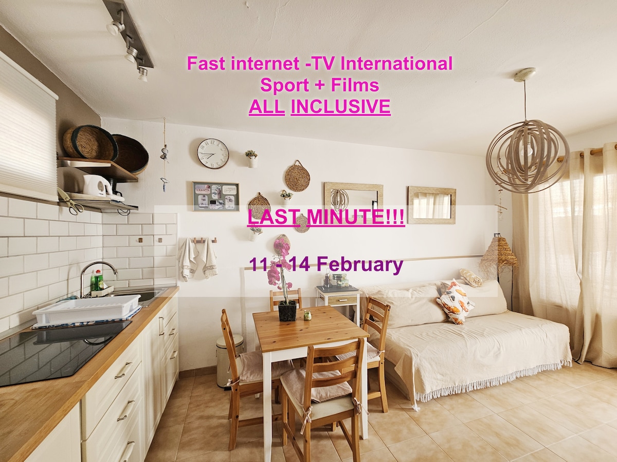 Apartamento muy luminoso con Wifi,SmartTv(Netflix y Primer Vídeo), en una de las mejores zonas de Corralejo,en el centro. Todos los restaurantes a pie, Hiperdino al doblar la esquina, correos, bancos , bazar, imprentas para imprimir documentos , gasolinera , cafeterías , parque infantil, cancha de futbol, no es necesario coger el coche para nada , incluso hay una pequeña playa tan solo 100 m. Casa amplia, limpia ,1 sofá cama, plato de ducha grande ,2 camas de matrimonio de 140 en litera con TV.