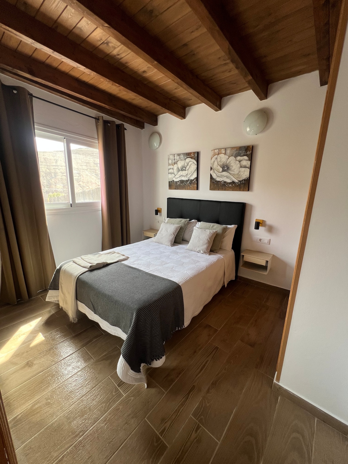 Next to the enchanting Calderòn Hondo, and few minutes walk from the center of Lajares, this brand new apartment benefits from a spacious garden terrace and solarium where you will relax and enjoy the great climate of the island. It has been designed in modern style with clean lines, large windows, concrete floors, but at the same time taking advantage of the beautiful aspect of the local volcanic stone walls. Fully equipped kitchen, wifi, and 40 "TV with international channels!