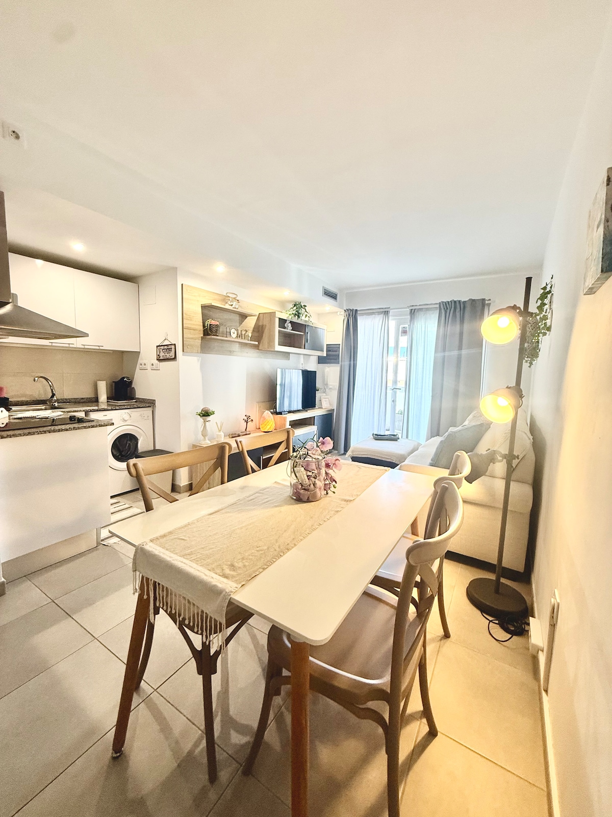 Apartamento muy luminoso con Wifi,SmartTv(Netflix y Primer Vídeo), en una de las mejores zonas de Corralejo,en el centro. Todos los restaurantes a pie, Hiperdino al doblar la esquina, correos, bancos , bazar, imprentas para imprimir documentos , gasolinera , cafeterías , parque infantil, cancha de futbol, no es necesario coger el coche para nada , incluso hay una pequeña playa tan solo 100 m. Casa amplia, limpia ,1 sofá cama, plato de ducha grande ,2 camas de matrimonio de 140 en litera con TV.