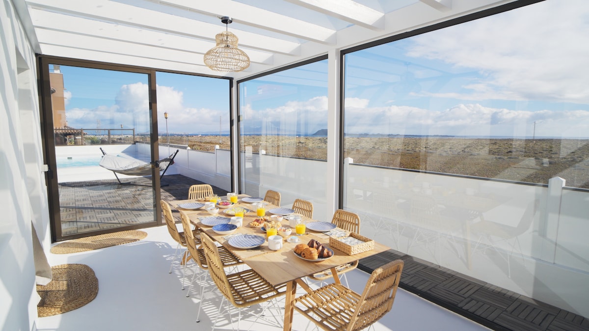 Aguarii Cotillo:距离海滩50米/可远程办公/游泳池/露台