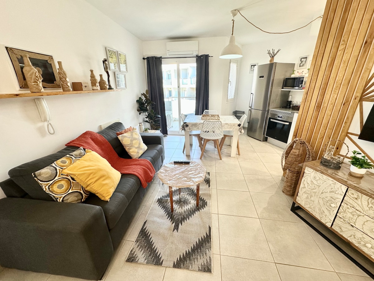 Feel right at home in this bright and comfortable apartment, where a modern kitchen flows into a cozy living space, perfect for relaxing after a day out. The bedroom features a comfortable king-size bed, ideal for a restful night’s sleep. One of the highlights is the private terrace, where you can enjoy beautiful island views, perfect for morning coffee or unwinding at sunset. With fast 600Mbps fiber-optic WiFi, it’s a great option if you need to stay connected while traveling.