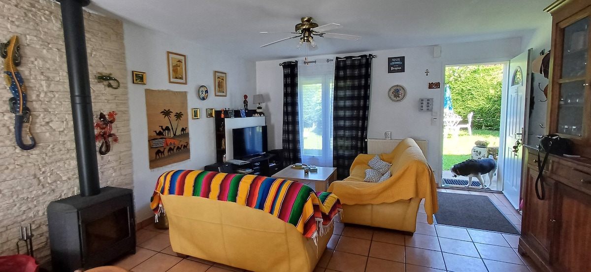 Warm and welcoming family home nestled in the heart of the Corrèze woods—perfect for a peaceful nature getaway. Spacious living area with traditional fireplace, equipped kitchen, screen and home cinema (bring your own projector). 4 bedrooms, 1 sofa bed, 2 bathrooms, 2 toilets. New bedding. Linen available for rent: €25/set. Horses help maintain the meadows part of the year, and our free-range chickens roam freely—please treat them with care.