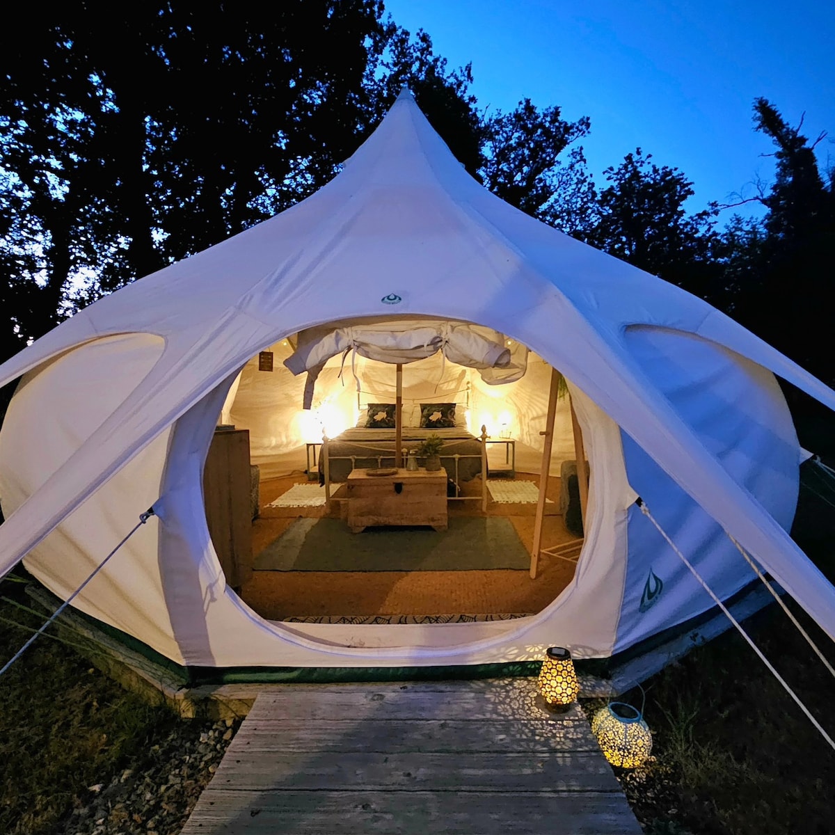 Installée dans un espace boisé, calme et entièrement privé, notre tente tout confort vous offre une parenthèse hors du temps. Ici, loin de l’agitation, vous dormez sous les étoiles, entouré par la nature, en toute intimité. Ce qui vous attend : • Une tente spacieuse et cosy • Des toilettes sèches • Une salle de bain • Une cuisine • Une piscine à disposition Vous trouverez ici calme, confort, et un vrai retour à l’essentiel, sans pour autant renoncer au bien-être.