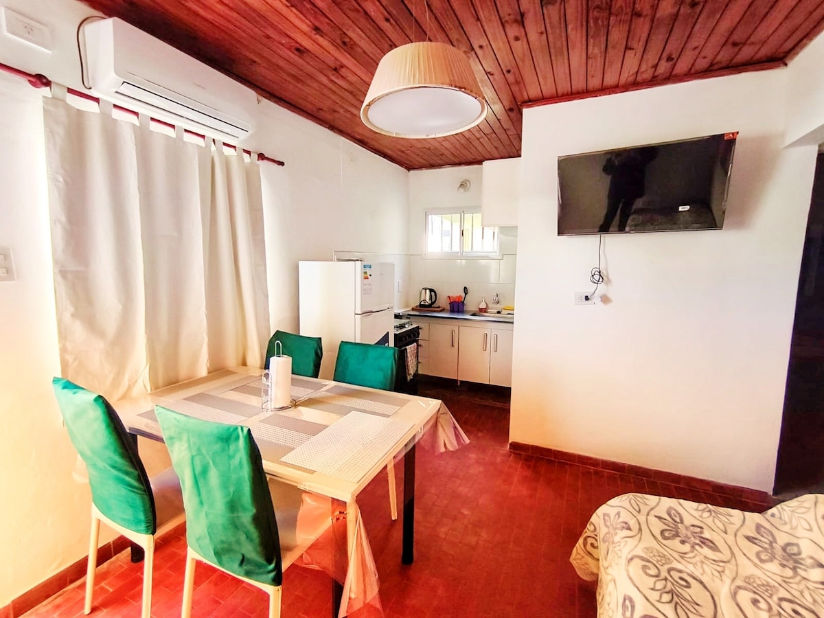 Disfruta de la calidez de este departamento a estrenar. De ubicación privilegiada, céntrica y segura (a 300 mts de la peatonal, 200 mts de la costanera y parque camba cua, a unas pocas cuadras de las playas). Cuenta con una cama matrimonial y una cama marinera, aire acondicionado frío/calor, TV, wifi, ropa de cama, baño completo privado, terraza con lavandería, edificio con SUM con parrilla (sujeto a reserva previa)