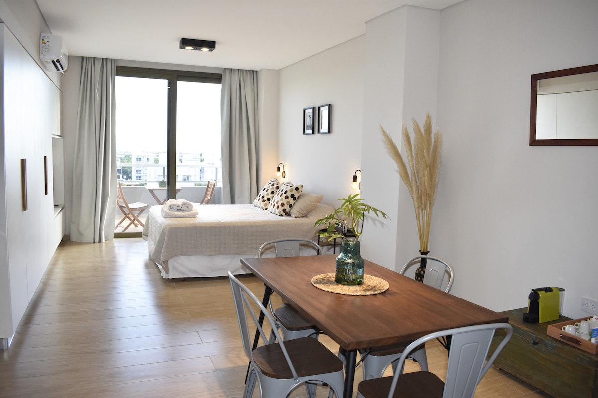 Hola, somos Daniela y Sebastian, nuestro departamento está en el centro de la ciudad, tiene dos habitaciones y puede alojar hasta cuatro personas para lo cual está completamente equipado. Es ideal para una familia tipo. Tiene cercanía con supermercados, farmacias, estacion de servicio, mercados de frutas y verduras y tiendas en general. Cómodo, moderno y luminoso.