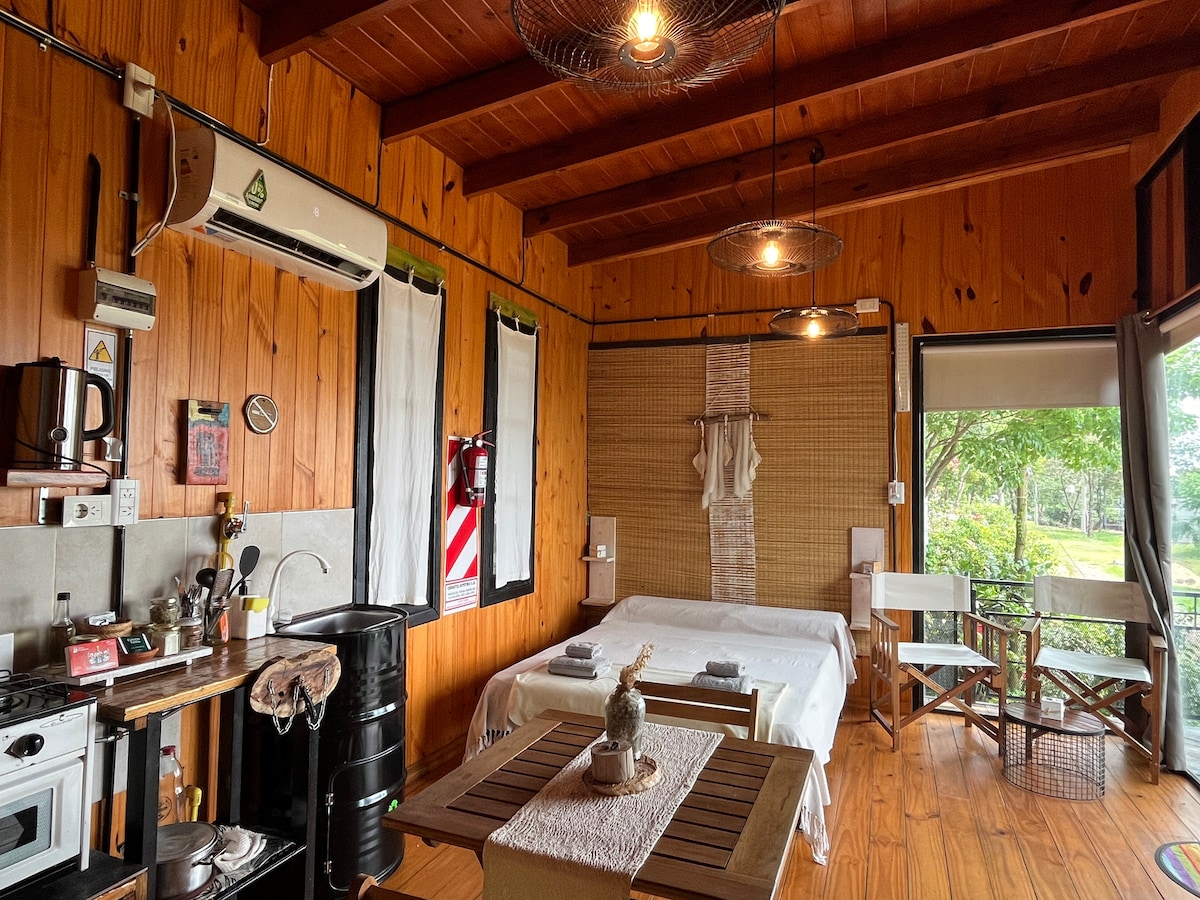 Espacio a estrenar, muy bello, cómodo, tranquilo y seguro ya que sus anfitriones viven allí. Ideado para disfrutar de la Naturaleza (aves, mariposas), expresarte artísticamente o desarrollar tus actividades laborales en un clima de relax e intimidad. Se encuentra cerca del aeropuerto y a 20 min. del centro. Ofrecemos sin cargo, la posibilidad de traslado al llegar, una clase de yoga día por medio, como así también un servicio de desayuno regional en la habitación, variado día a día.