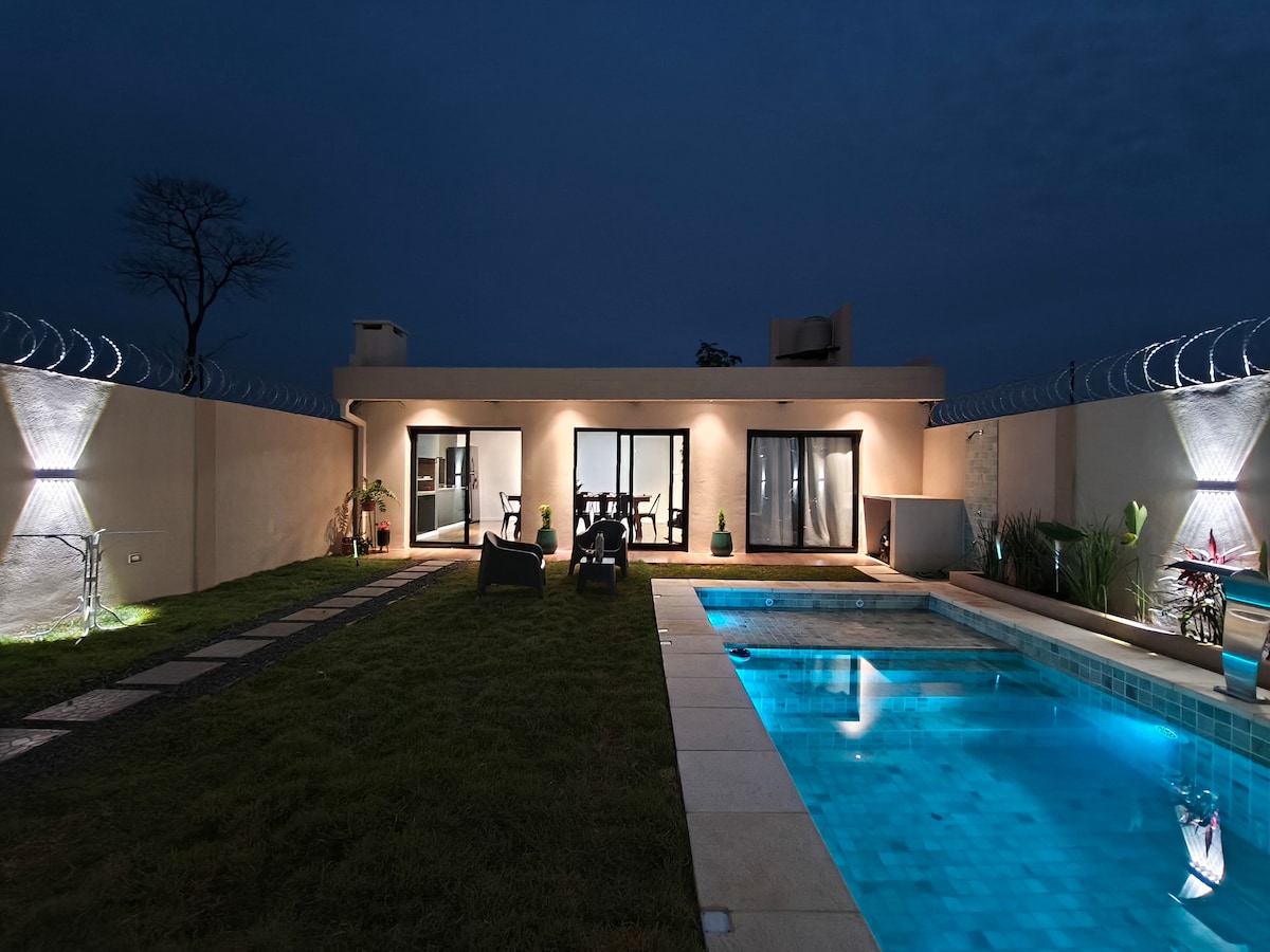 Relax total en un loft independiente para 2 personas. A 20 min de Corrientes y 5 min del aeropuerto. • Cocina completa y utensilios • Parrilla y fogón en parque con vegetación • Piscina compartida • WIFI + A/C + Estacionamiento Acceso directo a la Laguna Soto para caminatas y naturaleza. Perfecto para parejas o viajeros tranquilos. No se aceptan mascotas ni menores.