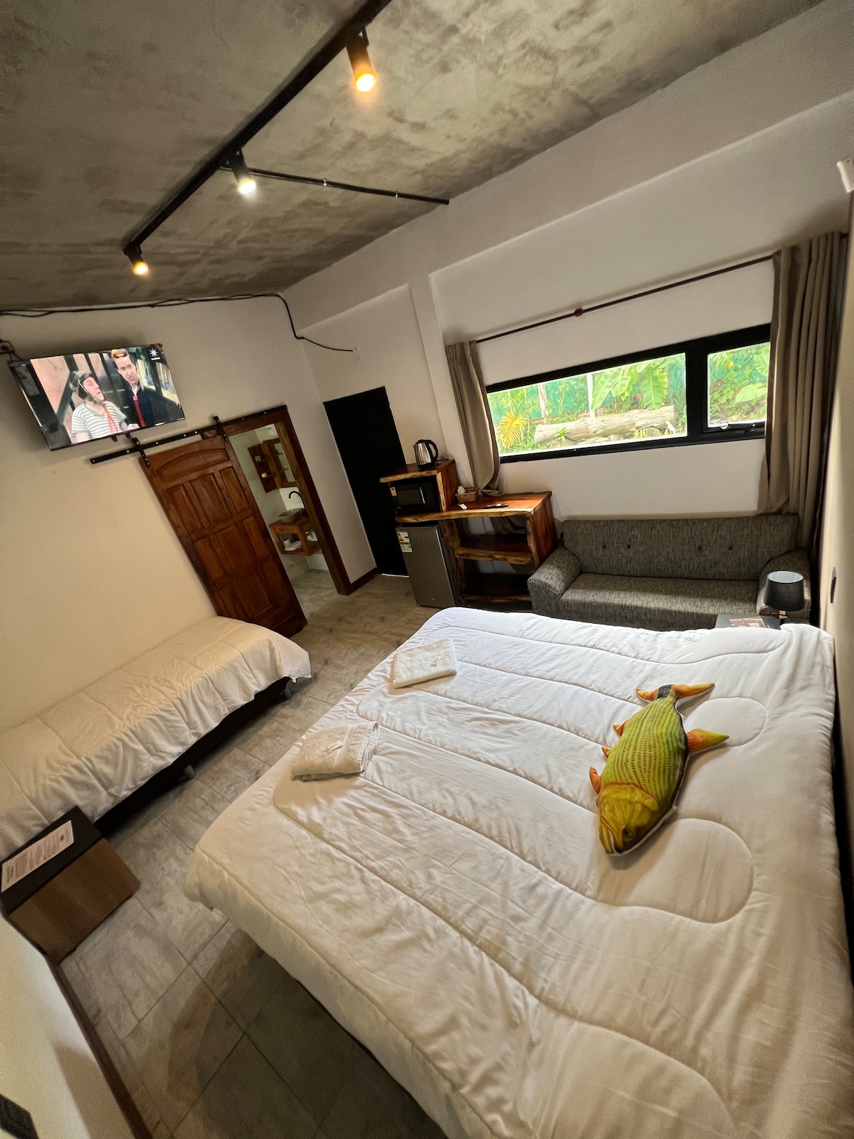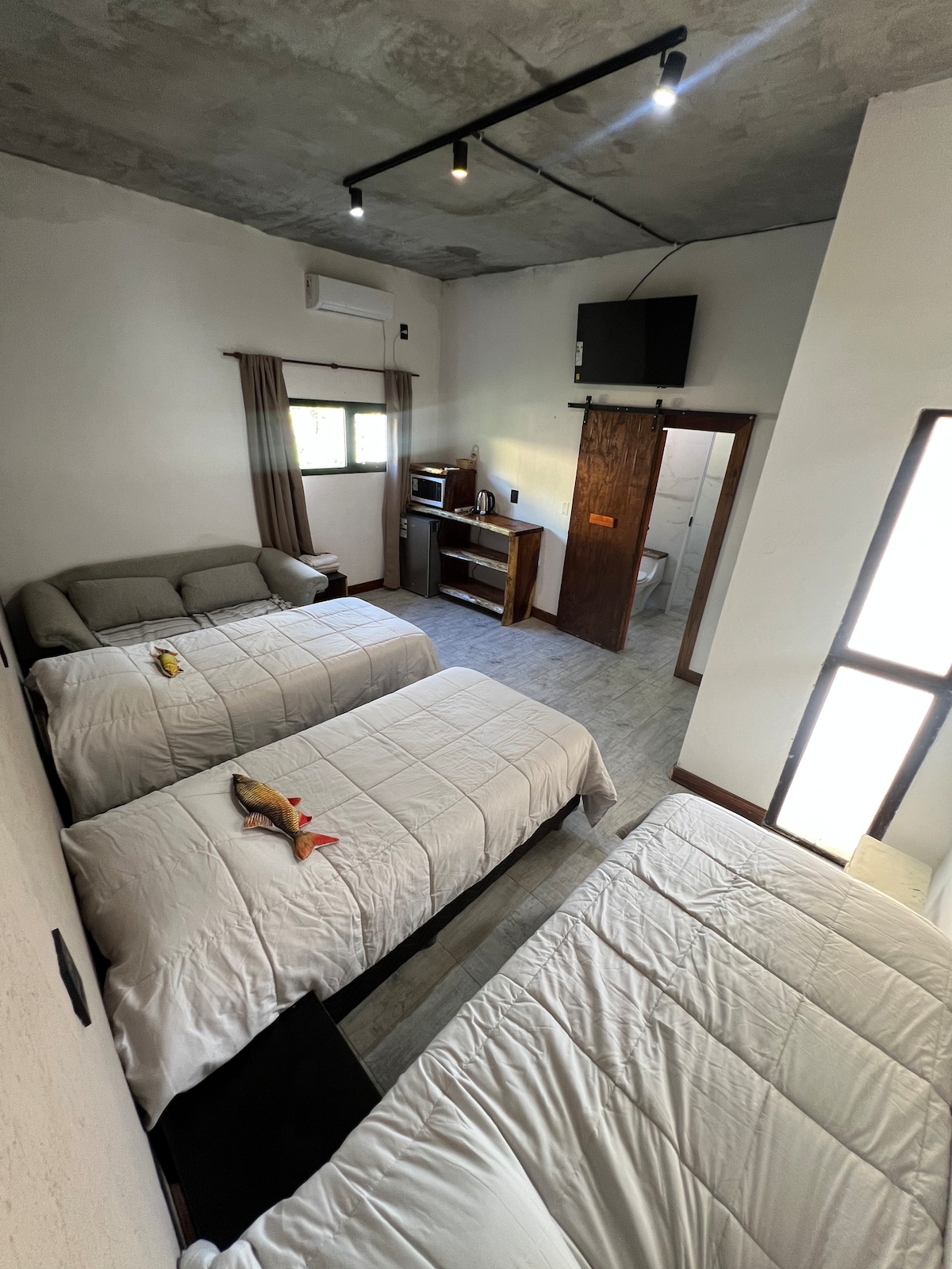 El hotel es ideal para descansar de paso o disfrutar una estadía tranquila en Paso de los Libres. Ofrecemos un ambiente cómodo, moderno y sereno, pensado para familias, turistas y viajeros que buscan descanso, buena atención y confort. El hotel se encuentra en 1° piso, con acceso por escalera. Nuestras habitaciones cuentan con aire acondicionado, TV y wifi, brindando todo lo necesario para una estadía agradable. Cada mañana servimos el desayuno, para que comiences el día de la mejor manera ✨