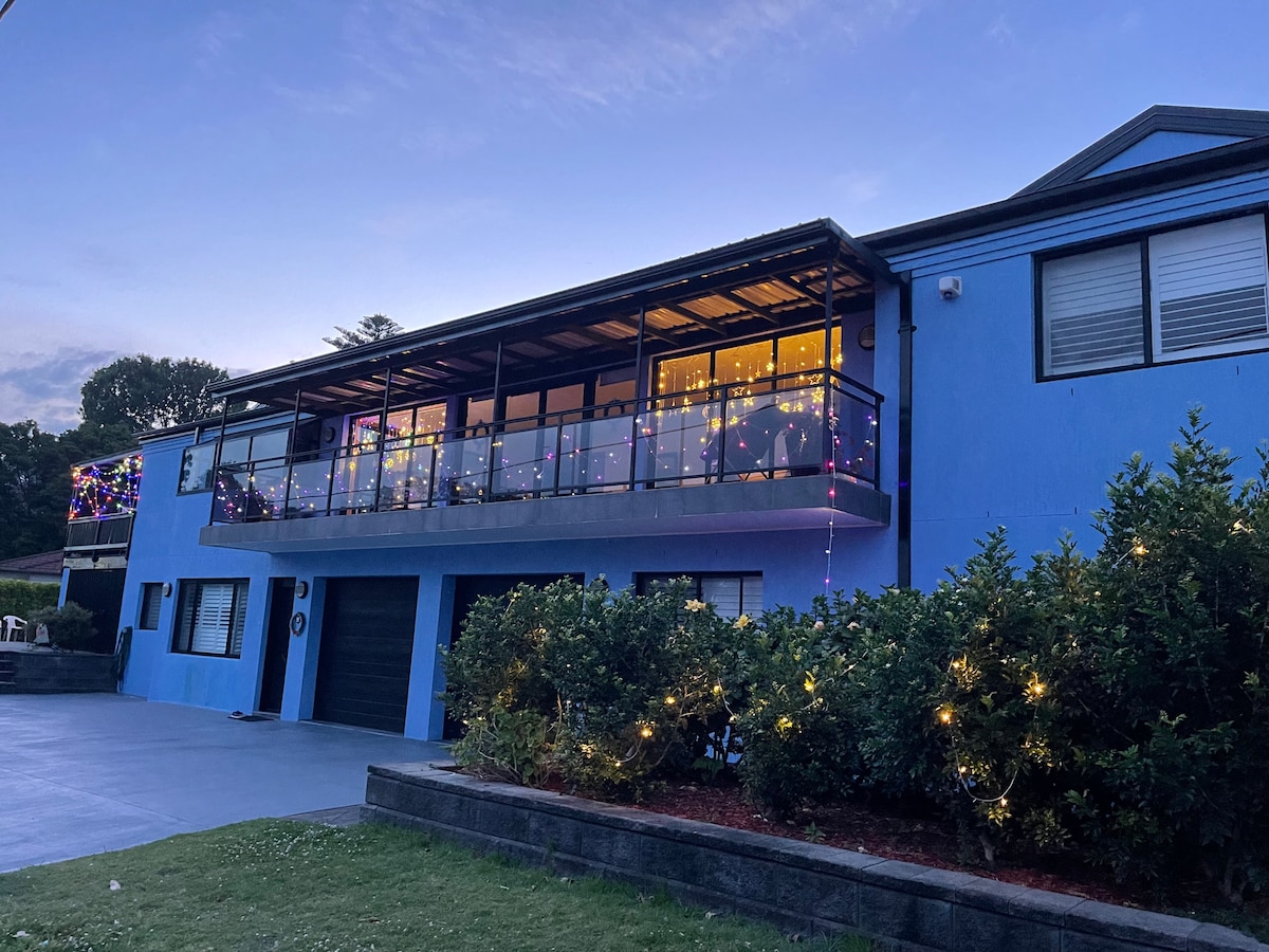 Brand new luxury 5 Bedroom Family Beach House with all new furniture and fixtures. 500m walk to Fairy Meadow Beach & Park, 50m to Coastal Cycleway, 650m to Coles/Aldi/Woolworths, Free bus to Wollongong beach and city from across the street. Sleeps up to 10 people with 4 x Queens, and 2 King Singles, 3 Bathrooms, 2 bathtubs, open plan kitchen/dining/lounge, 10 seat dining table, TV theatre room, ducted air conditioning, BBQ, double garage, driveway boat parking, large parkland behind house.