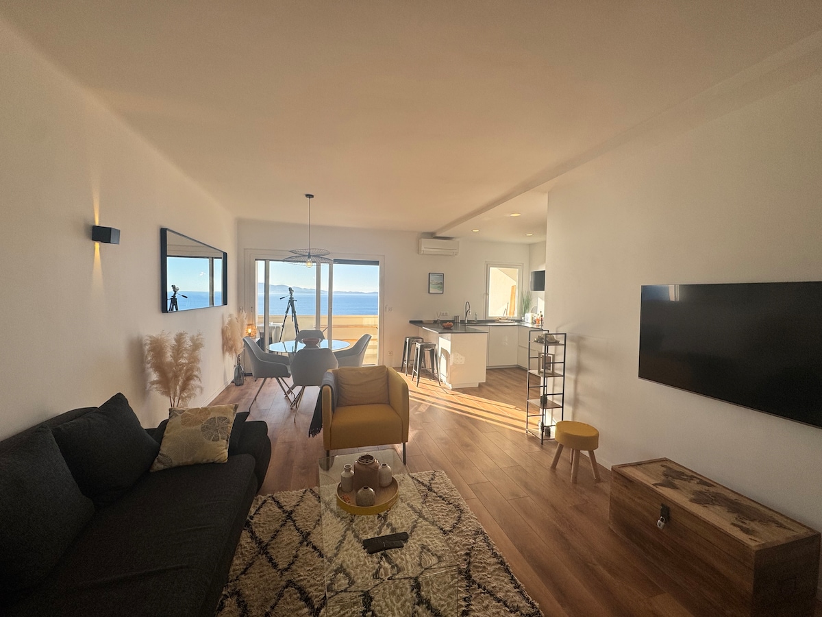 Do you want calm, a breathtaking view, and all the modern comforts? It's at Casa Anpà! Let us introduce you to this new mini villa of 50m2 and its 35m2 terrace: small but perfectly designed to be comfortable as desired and openings all overlooking the sea: to the left, to the right, it is everywhere! And all ideally located: 2 steps from the beach of St Cyprien and its shops (5 mins by car), and that of Pinarello (10 mins by car) (and not only!)