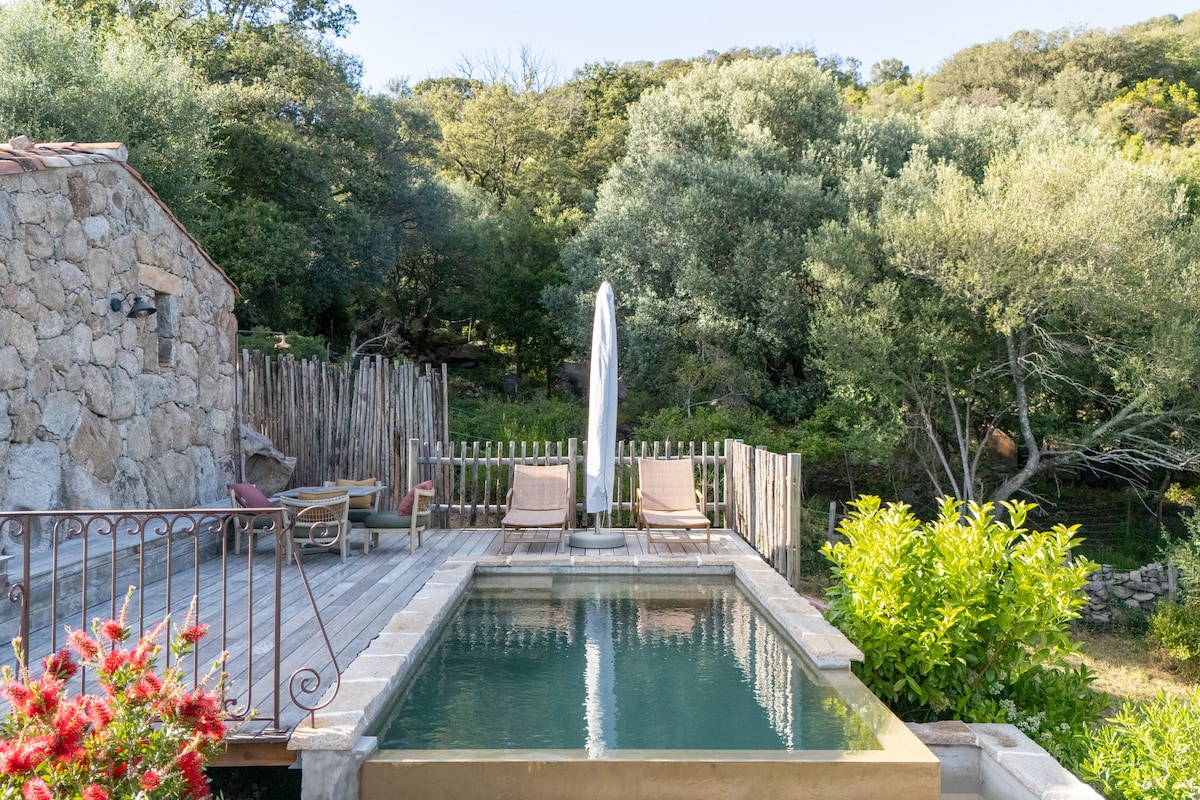 Vous êtes ici dans Sud de la Corse , entre le soleil, la mer et notre montagne! Prenez le temps de vous poser, de respirer l'air doux, de découvrir nos senteurs, d’écouter le chant des oiseaux …. Le caseddu n’est pas qu’une maison, c’est un refuge, un lieu où l'on se sent bien. Ici, le temps s’arrête et la vie bat au rythme de chez nous. Nous serions heureux de vous accueillir dans notre petit coin de paradis. Notre Piscine est chauffée et intégrée à la beauté naturelle du site. À très bientôt !
