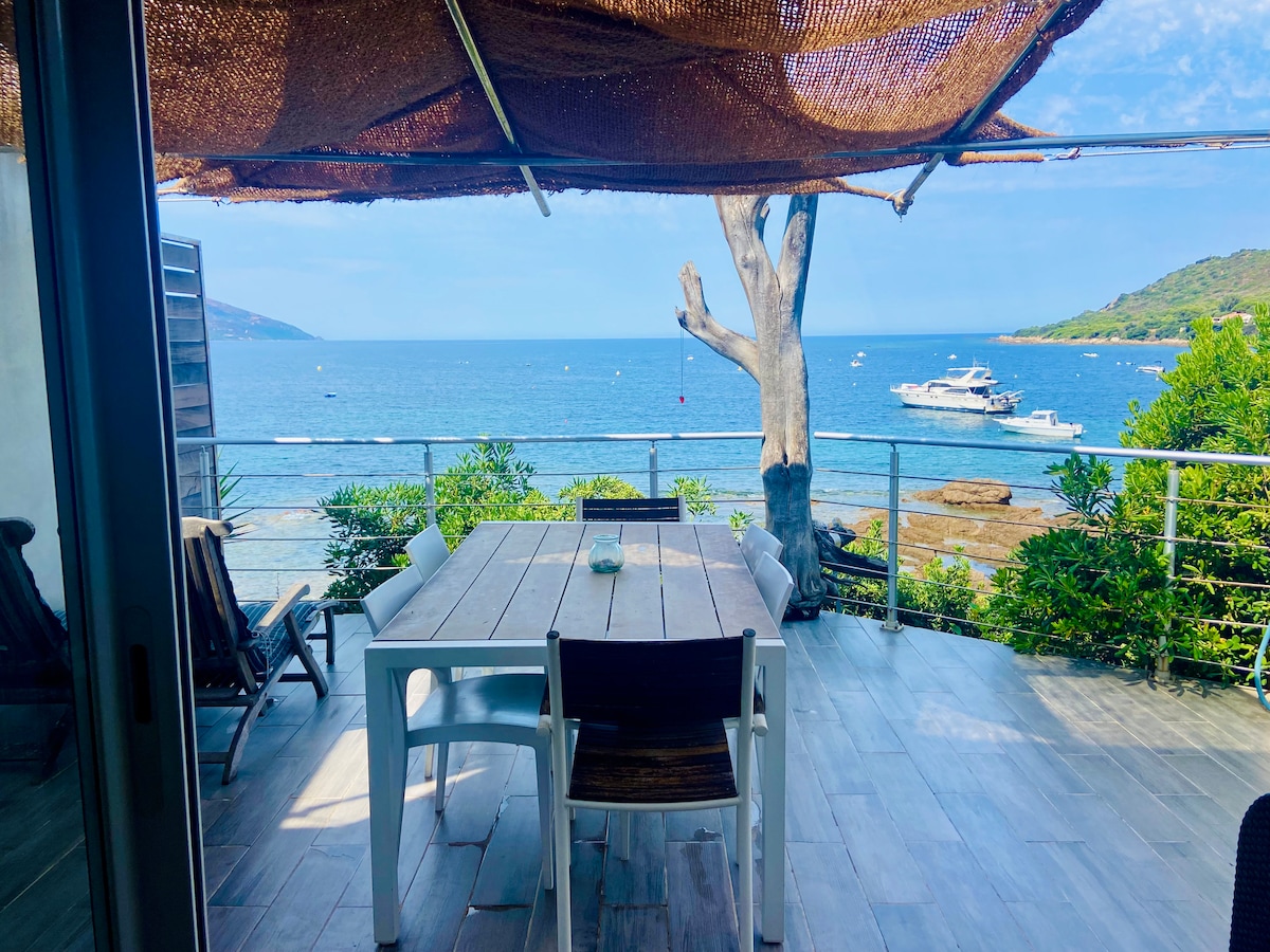 DANS UN QUARTIER RESIDENTIEL MAGNIFIQUE VUE A 180° SUR ISOLELLA LES SANGUINAIRES ET AJACCIO. LA PLAGE D AGOSTA EST A 150M A PIED TOUS LES COMMERCES SONT A 300 M A PIED SPA EXTERIEUR CHAUFFE SUR LA TERRASSE FACE AUX SANGUINAIRES TERRASSES DE 47 M2 PLANCHA+JARDIN SANS VIS A VIS PLACE PARKING ET GARAGE. ACCES PEDESTRE A LA PLAGE PAR PORTILLON DANS LE JARDIN