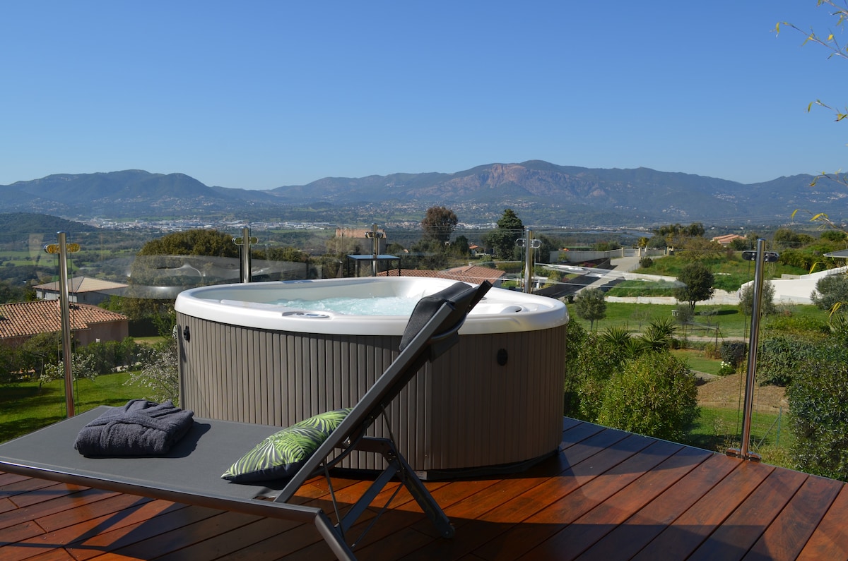 Profitez d'un logement tout équipé et de sa terrasse, avec jacuzzi, offrant une vue splendide sur la mer, les îles Sanguinaires et les montagnes environnantes. Calme absolu. Idéal couple. Bébé bienvenu (0-2 ans). Pour explorer les environs, nous mettons à votre disposition un guide réalisé par nos soins proposant 15 journées différentes: Ajaccio, îles Sanguinaires, calanques de Piana, Bonifacio, plages, randonnées, baignades en rivière... Panier petit-déjeuner en option (18€ pour 2 personnes)