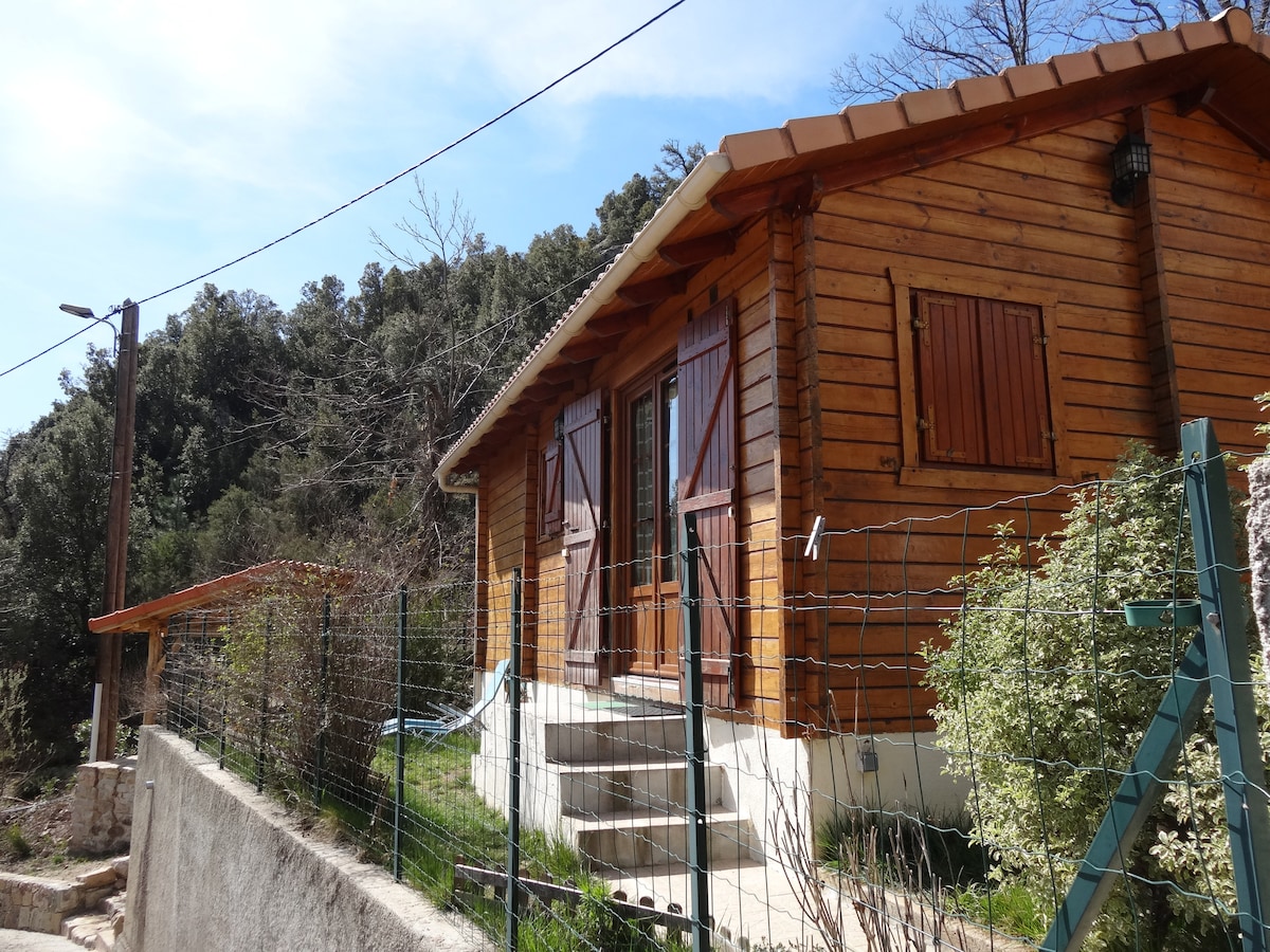 Au cœur du Parc Naturel Régional Corse maison chalet avec jardin au sommet d'un village typique équipé pour 1 à 4 personnes, situation calme et depaysante loin du flux touristique au pied d'une châtaigneraie, avec très belle vue dégagé sur les monts du village, à 50 mètres du début de chemin de randonnées vers les lacs et GR20, baignade en rivière ou mer