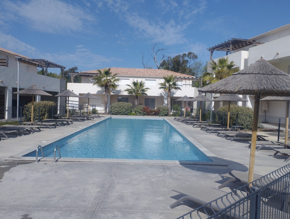 Beau T2 à 2 mins en voiture (10 mins à pied) de la plage de St. Cyprien et commerces (poste, superette, restaurants...), dans une nouvelle résidence avec piscine. Lumineuse pièce de vie avec coin cuisine équipé et aménagé, table à manger pour 4 personnes, canapé et coin télé. Belle chambre avec lit en 160 x 200, petit buanderie avec lave-linge et salle d'eau avec douche à l'italienne. Côté extérieur grande terrasse de 30 m2 avec table et salon d’extérieur. Vues jardin et piscine de la résidence.