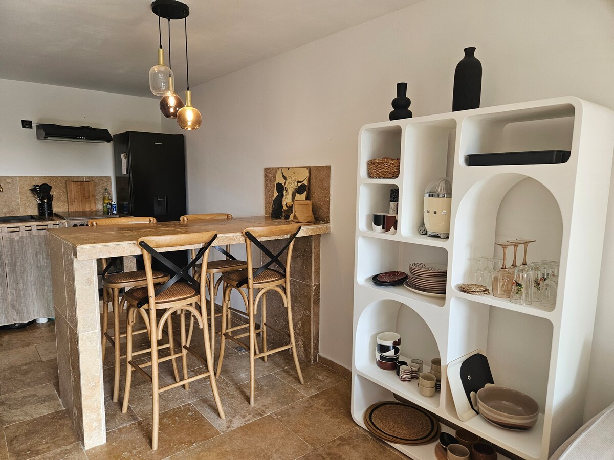 Appartement privé 2** avec entrée indépendante et un accès direct à la mer situé dans le sud à Solenzara : Appartement climatisé de 50 m2 Une pièce de vie une cuisine équipée avec lave linge et lave vaiselle donnant sur un coin repas et un salon avec canapé équipé d'une télévision. Une chambre : 1 lit Queen size 160 cm et 1 lit 90 cm (le linge de lit non fournit ) Une salle de bain avec douche et une terrasse avec barbecue donnant sur la mer avec accès direct à une petite plage
