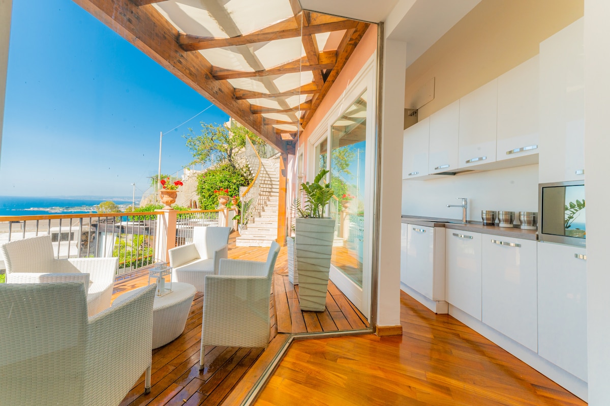 VILLA LOU TAORMINA Private Villa Panoramic Sea View Pool Exclusive use The villa has a furnished terrace facing the sea where you can relax and dine and guests have exclusive use of a sea view private swimming pool ..surrounded by a large garden with palms and exotic plants MUST CLIMB STAIRS AS STATED UNDER SAFETY & PROPERTY