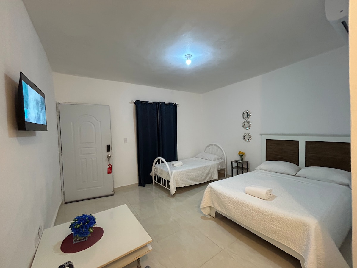 Habitación al lado de la PLAYA está ubicado en la zona de El Cortecito, antiguo pueblo de pescadores, Las playas son de arena blanca y fina de color azul verdoso. Esta en el corazón de Bávaro a unos minutos caminando de la zona principal de bares y restaurantes. Habitación y cama Full y Twin, wifi, Tv, Aire acondicionado, baño con agua caliente. Tiene 2 niveles y si, al lado de la playa misma.