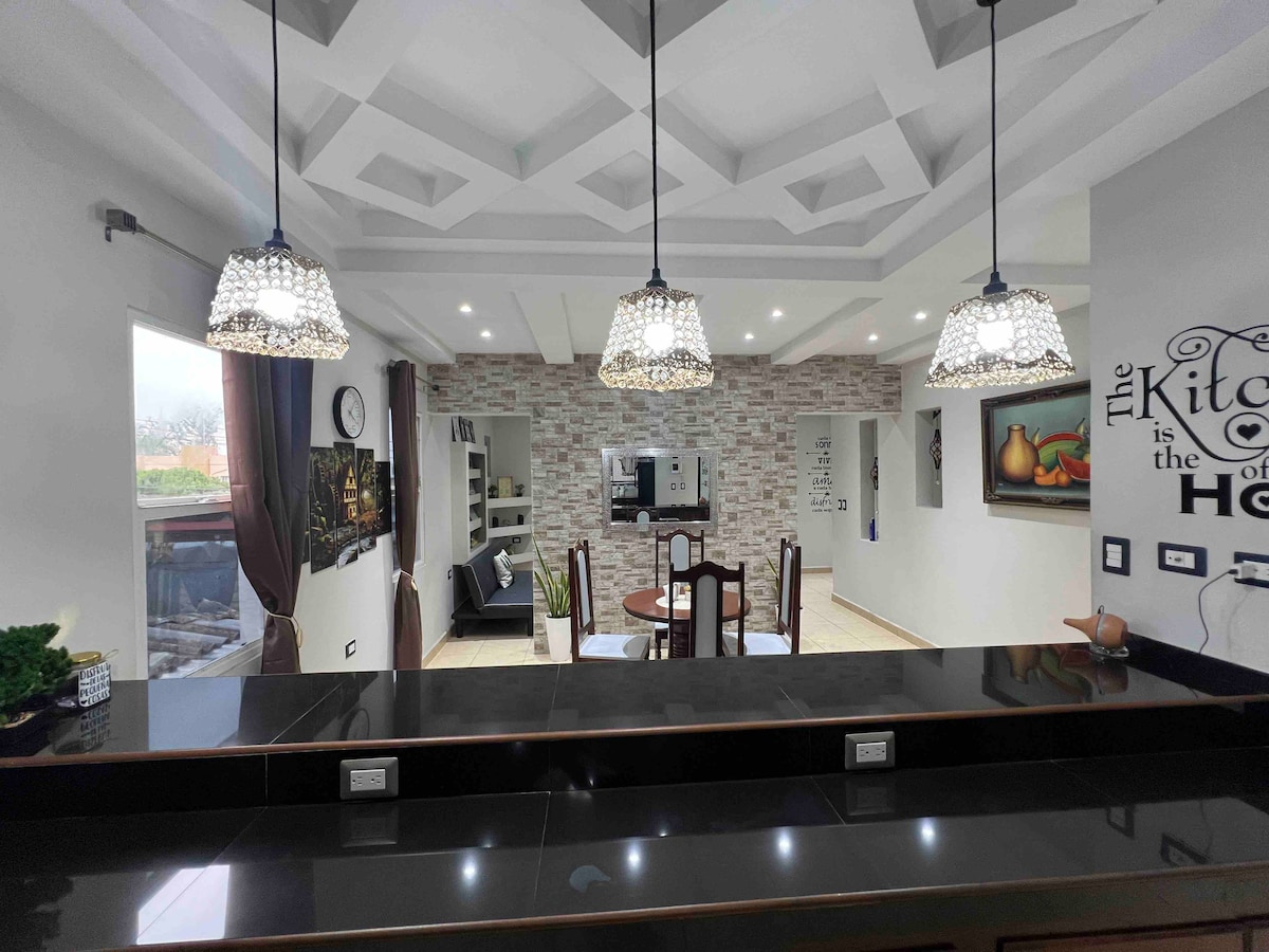 Disfruta de un lugar seguro, silencioso y privado ubicado en zona residencial, Ideal para viajes en familia, y viajes de trabajo. Ubicado a 5 minutos del city mall, a 5 minutos de la zona viva, Restaurantes, Hospitales, y mucho mas. Cuenta con 2 Amplias habitaciones, 2 baños completos, cocina equipada, studio, lavanderia dentro, ademas de amplio patio y estacionamiento. Cuenta con todos los servicios basicos, Tv Cable, Wifi, Aire acondicionado en toda la casa, agua caliente, Lavavajilla.