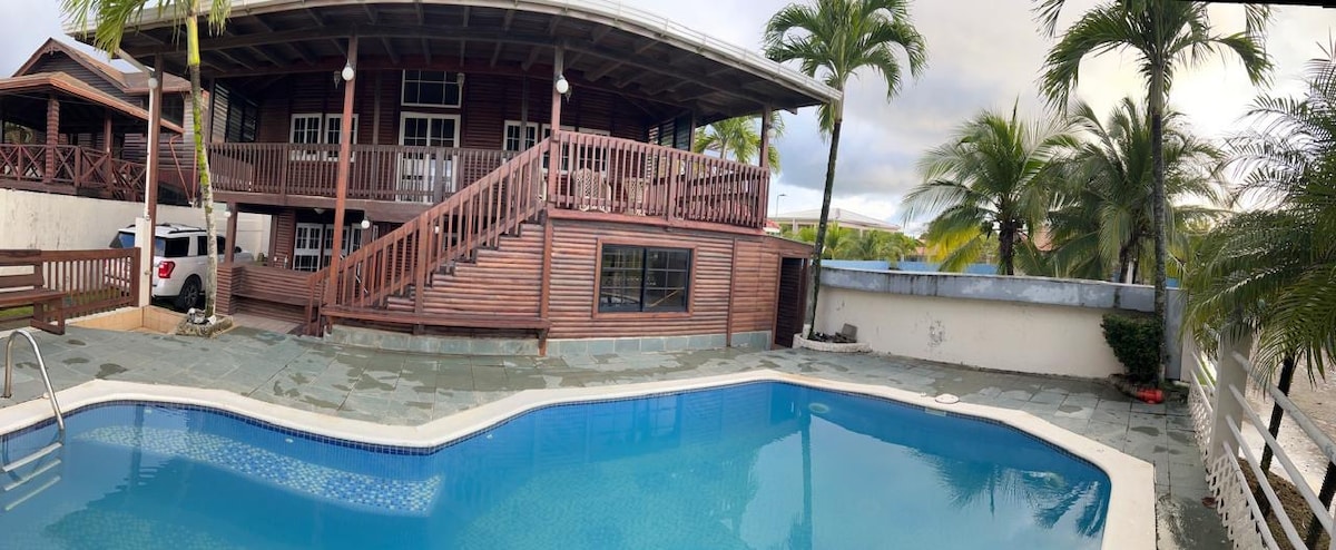 Bienvenido a Pinetree Villa, un hermoso espacio diseñado para la relajación. Disfruta de una cama King en la habitación principal y un amplio baño con bañera, y una piscina de agua salada ideal para tu piel. Relájate en la sala de estar al aire libre con grill y refrigerador de bebidas. La cocina está totalmente equipada y todos los espacios están climatizados. Además, contamos con generador eléctrico para tu comodidad. ¡Ven y vive una experiencia inolvidable en Pinetree Villa