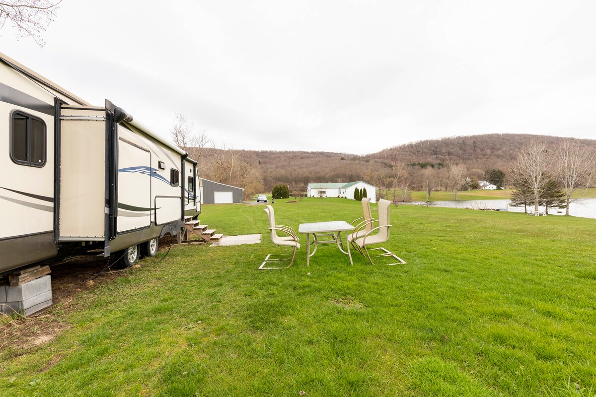 This is a 32' 2014 camper in a nice quiet setting. Self contained. Private 28 acres with 11.5 acre lake. Two other campsites and main house on property. Seasonal from April 1 to October 30, depending on weather. Has 3 slide outs. Fire pit available. No smoking INSIDE camper. Close to Interstate 81, Syracuse, Binghamton, Ithaca, and points North and South. Local restaurants, summer theater, shopping, SUNY Cortland, Cornell University, Ithaca College, TC3, etc.