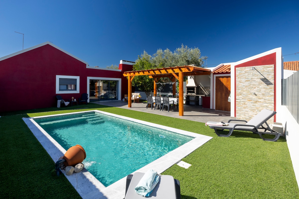 Divirta-se com toda a família e amigos neste espaço elegante. localizado na pacata vila do Couço, lagoiços, a moradia conta com 3 quartos duplos, 2 WC e Open space cozinha/sala completamente equipada. Piscina de água salgada em duche exterior.