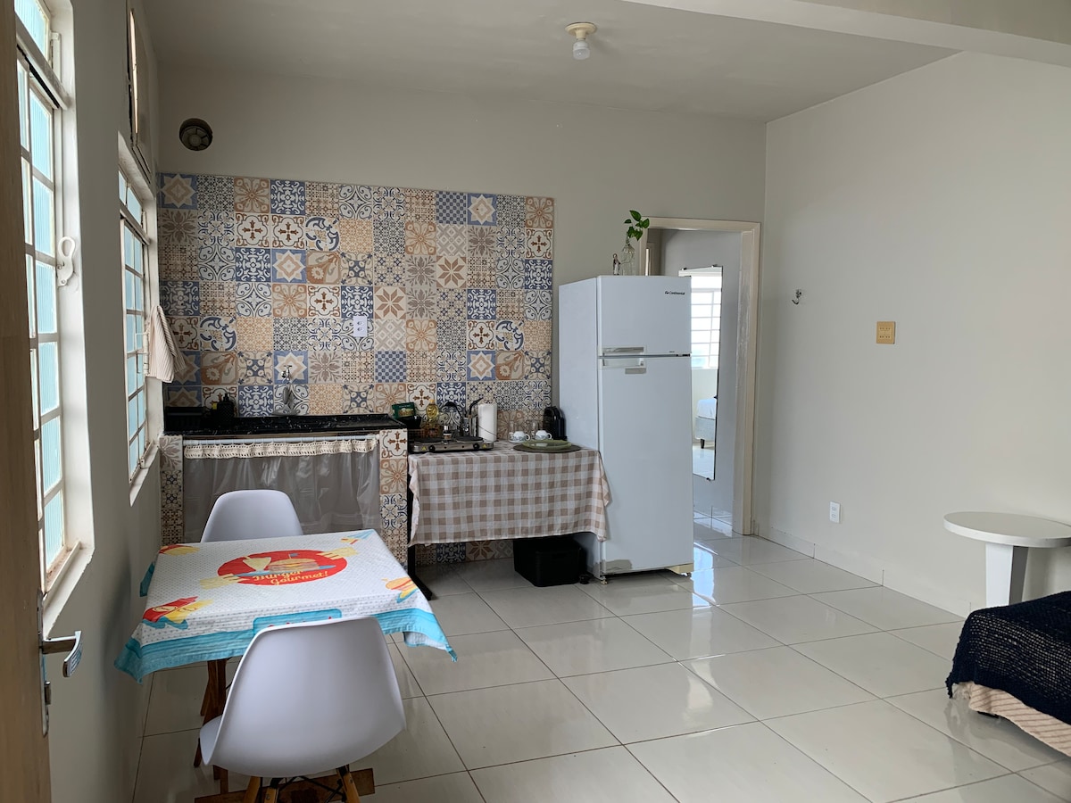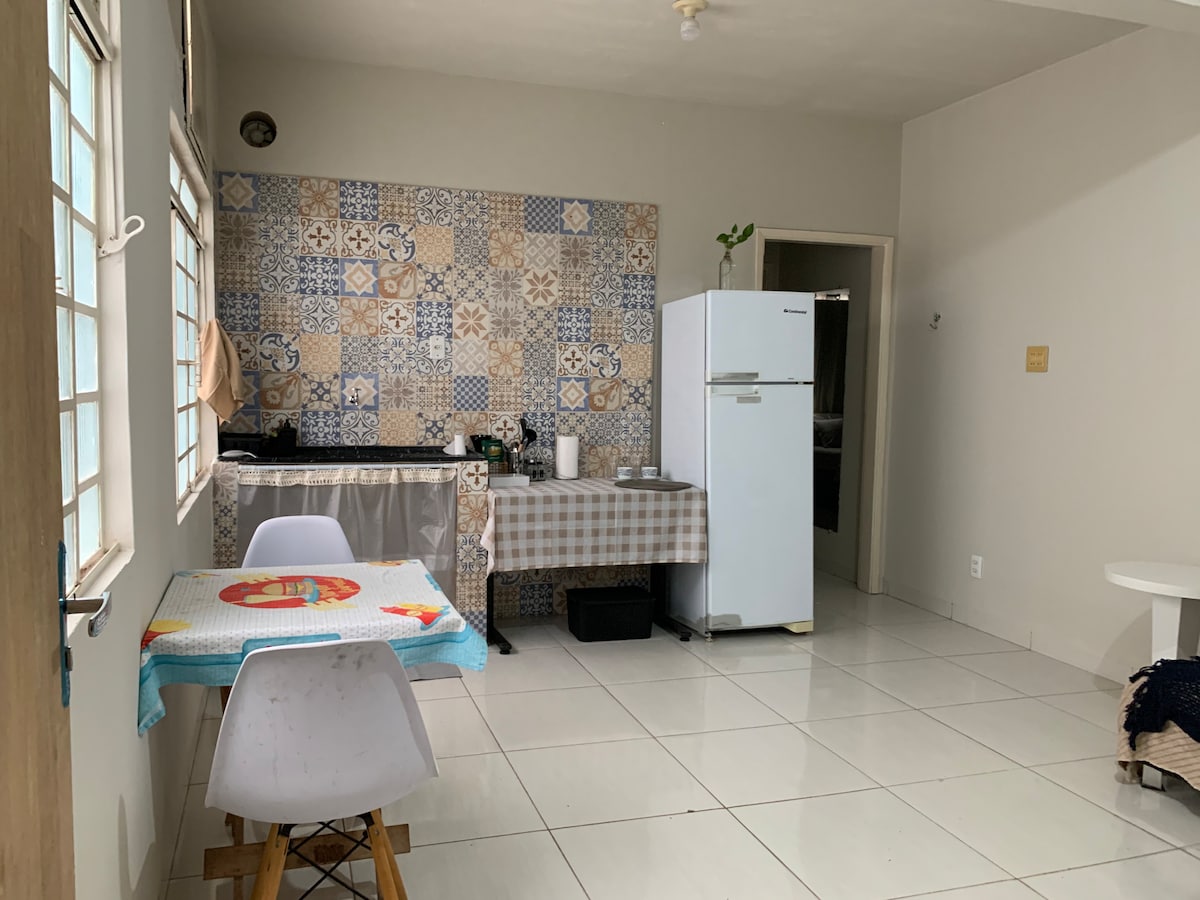 Kitnet Mobiliada com utensílios domésticos bem localizada próximo a Bares Restaurantes Supermercado Farmácia Posto de Gasolina proxima ao Aeroporto .Acomoda uma ou duas pessoas ideal para quem esta a passeio ou a trabalho em nossa cidadeAmbiente confortável famíliar e com atendimento de qualidade.
