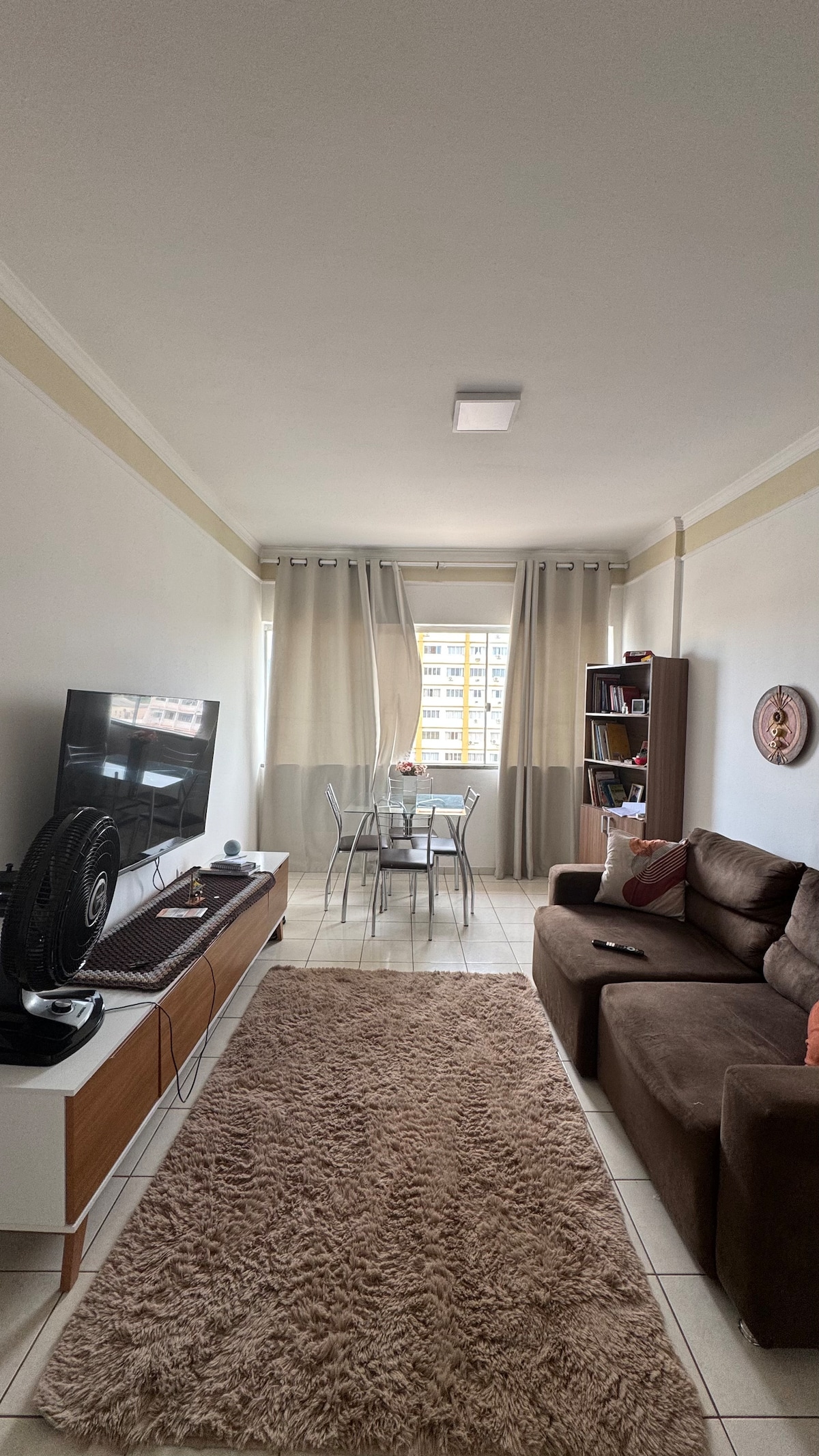 Apartamento no primeiro andar (um lance de escada) disponível em rua principal, no bairro Dom Bosco, há apenas 5 minutos da praça principal da cidade! Próximo à açougue, farmácia, mercado e pastelaria. Com ar condicionado na sala e quarto. 1 cama de casal, 1 de solteiro e 1 sofá cama.